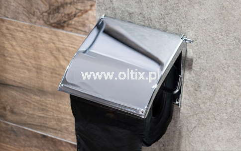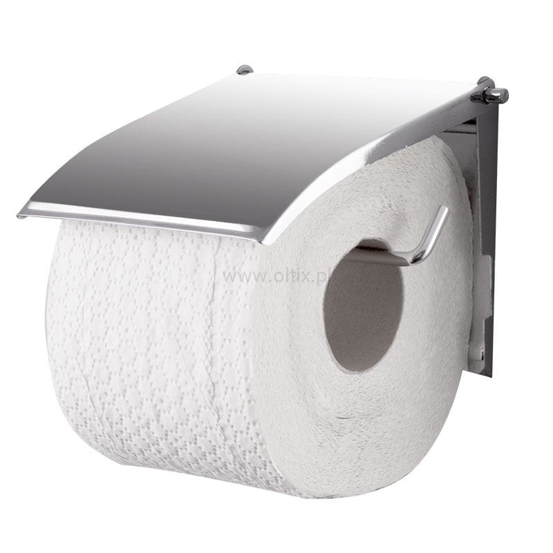 Uchwyt na papier toaletowy z klapką wykonany ze stali chromowanej.