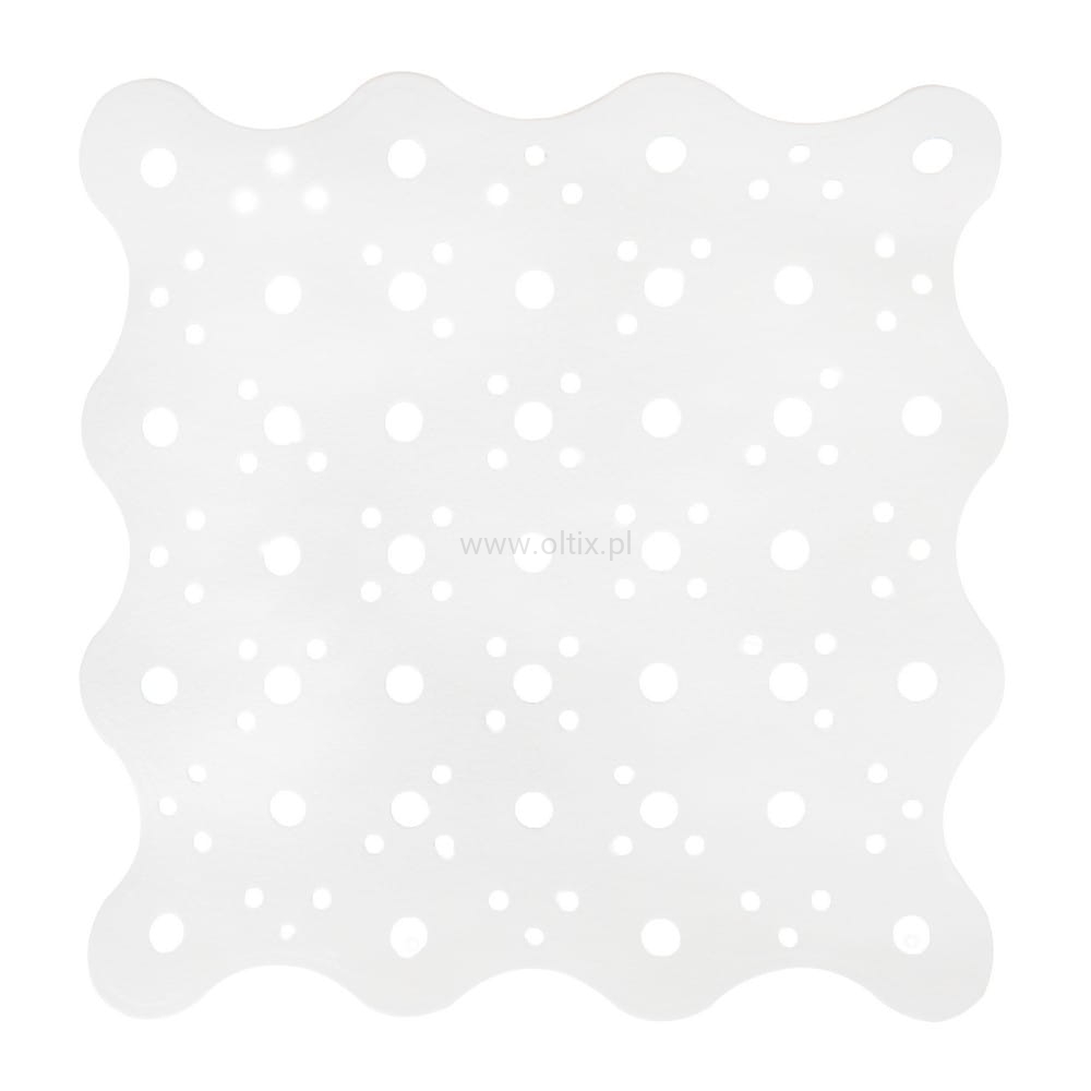 Antypoślizgowa mata łazienkowa w białym kolorze. Kwadratowy kształt będzie idealny do brodzika prysznicowego. Na spodzie maty pod prysznic zastosowano specjalne przyssawki mocujące ją do podłoża. Mata łazienkowa jest bardzo prosta w utrzymaniu czystości. Czyścić w 30 stopniach, nie prasować, nie czyścić chemicznie, nie wybielać, nie suszyć w suszarce bębnowej.
