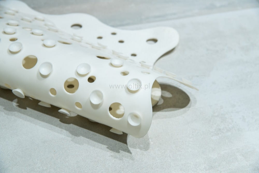 Dla zapewnienia lepszej przyczepności wyposażona została w wypustki, dzięki czemu skutecznie zabezpiecza przed poślizgnięciem, zapewniając wysoki poziom bezpieczeństwa podczas korzystania z prysznica.