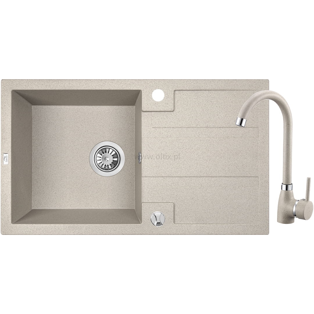 Barbados - zlewozmywak 1-komorowy z ociekaczem z baterią granitową z wylewką U