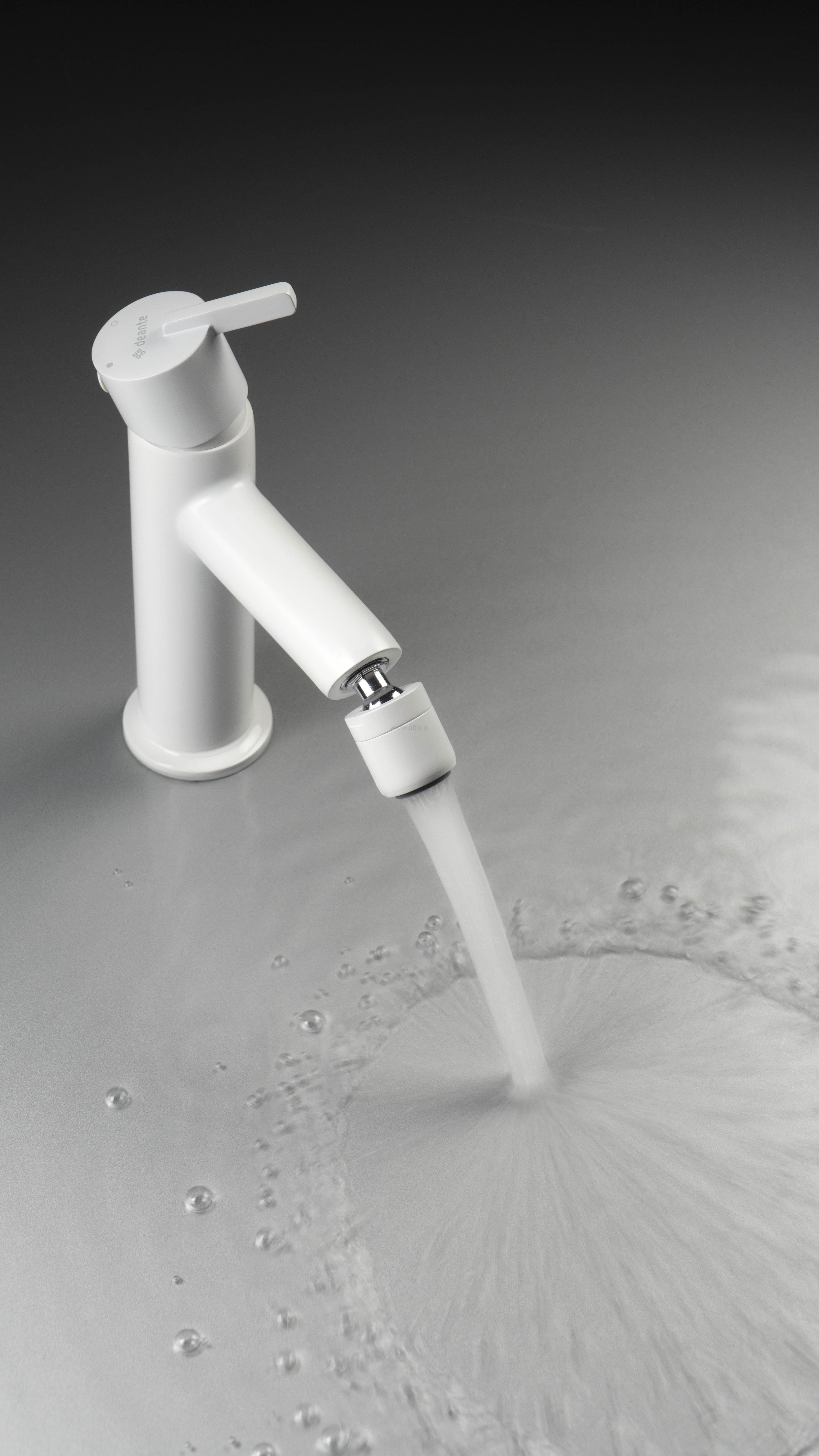 Biała, matowa powierzchnia armatury Deante BIANCO jest efektem zastosowania innowacyjnej technologii. Jej specjalne właściwości powodują, że na produkcie nie pozostają odciski palców. Struktura powierzchni jest wytrzymała i łatwa w utrzymaniu w czystości. Aby usunąć osad, wystarczy przetrzeć baterię miękką ściereczką. Poza tym wnętrza zaaranżowane z wykorzystaniem białej armatury są wyjątkowo estetyczne i lekkie.