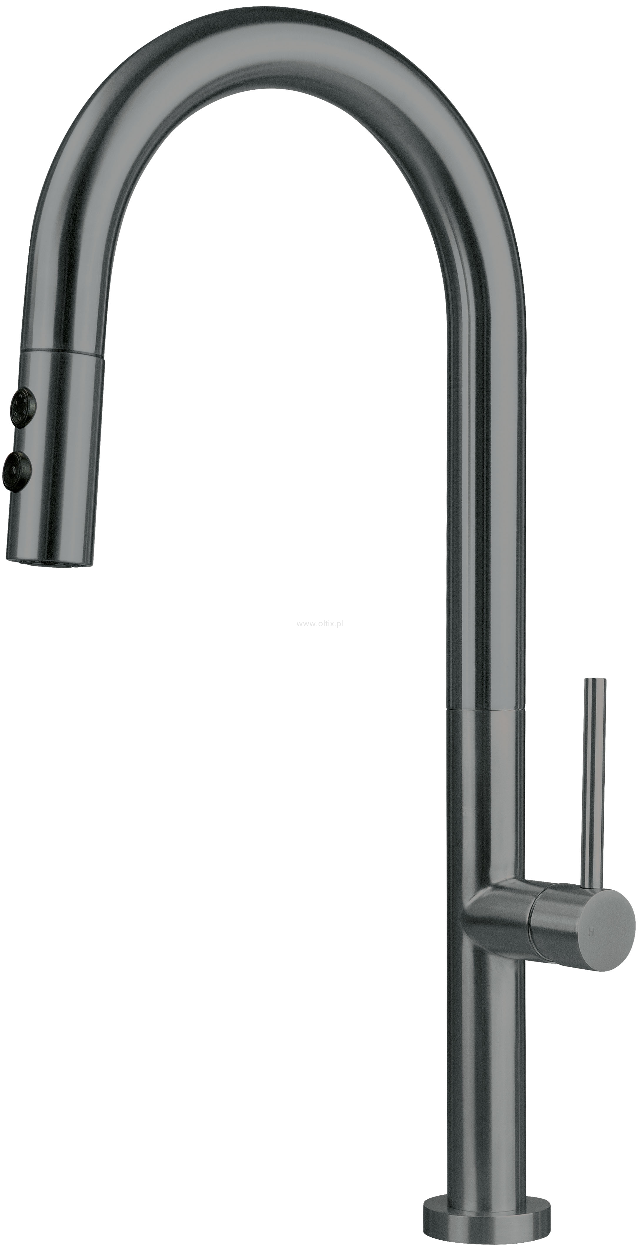 Bateria kuchenna Olfato dzięki połączeniu stylu i funkcjonalności, idealnie wpisuje się w potrzeby nowoczesnej kuchni. Jej wyciągana wylewka zapewnia wyjątkową łatwość w utrzymaniu porządku wokół zlewozmywaka. Dwufunkcyjna słuchawka z opcją strumienia napowietrzonego i deszczowego oferuje elastyczność podczas codziennych czynności, takich jak mycie naczyń czy płukanie warzyw i owoców. Wykończenie w kolorze titanium dodaje kuchni oryginalnego wyglądu.