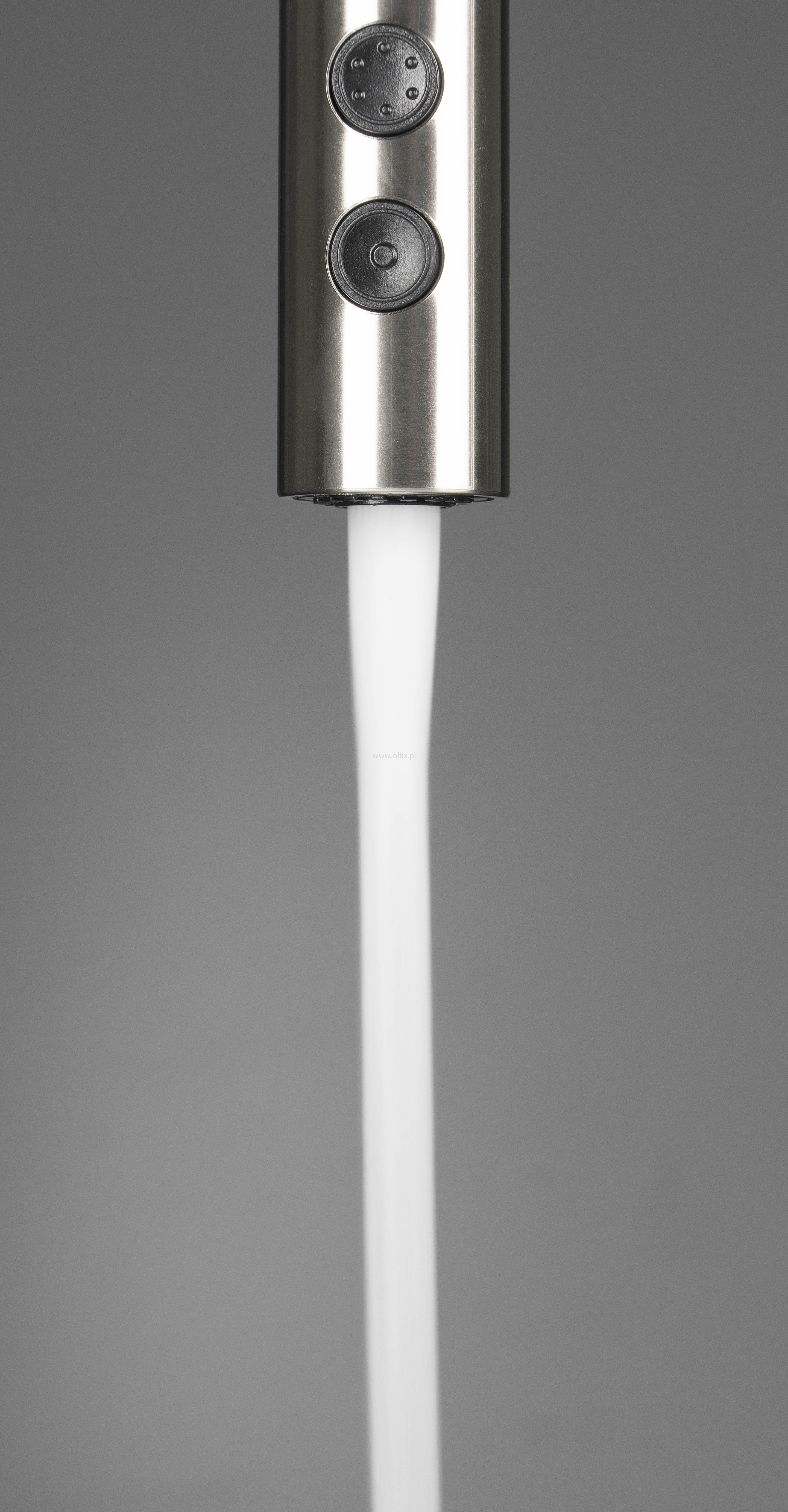 Bateria kuchenna Olfato dzięki połączeniu stylu i funkcjonalności, idealnie wpisuje się w potrzeby nowoczesnej kuchni. Jej wyciagana wylewka zapewnia wyjątkową łatwość w utrzymaniu porządku wokół zlewu. Dwufunkcyjna słuchawka z opcją strumienia napowietrzonego i deszczowego oferuje elastyczność podczas codziennych czynności, takich jak mycie naczyń czy płukanie warzyw i owoców. Stalowe, szczotkowane wykończenie dodaje kuchni nowoczesnego wyglądu, łącząc w sobie elegancję i ponadczasowy styl.