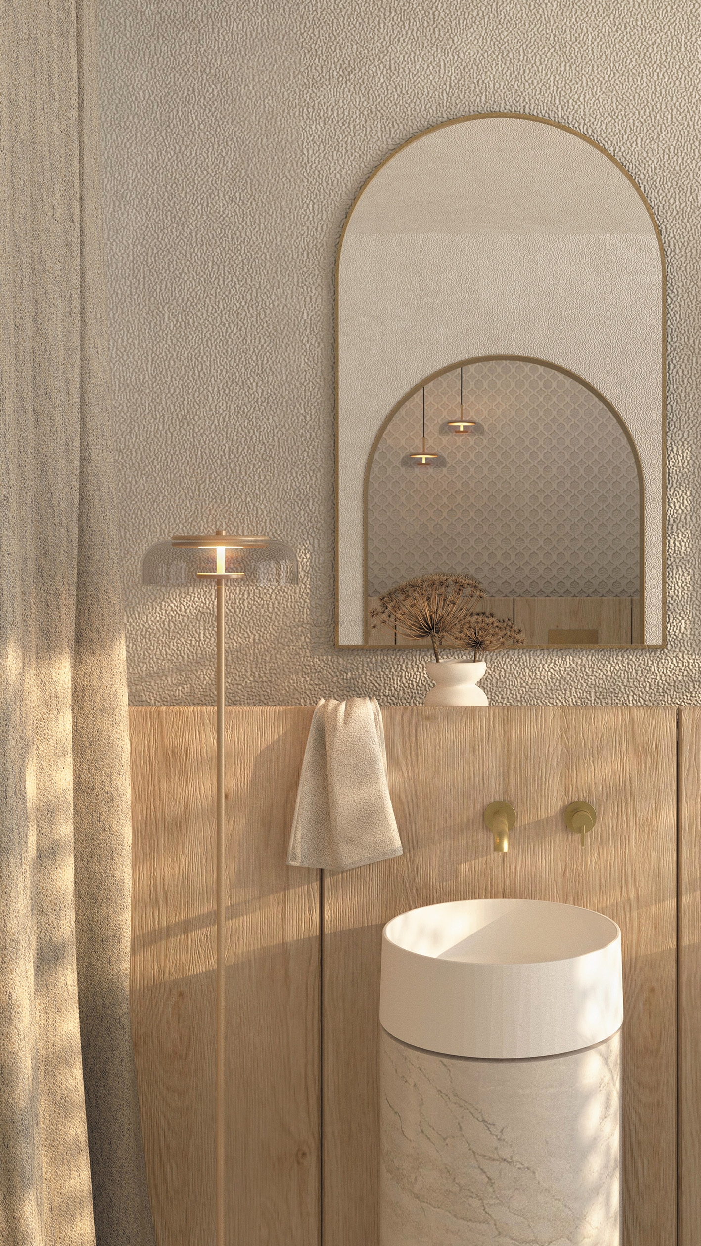 Złoto szczotkowane to idealny kompromis między błyskiem, a matem. Delikatna faktura podkreśla wyrazistość linii, przez co produkt wygląda bardziej szlachetnie. Ponadto takie produkty łatwiej utrzymać w czystości. Szczotkowane złote wykończenie doskonale pasuje zarówno do wnętrz glamour, jak również tych bardziej retro. Przytłumiony blask tworzy poczucie ciepła i przytulności.