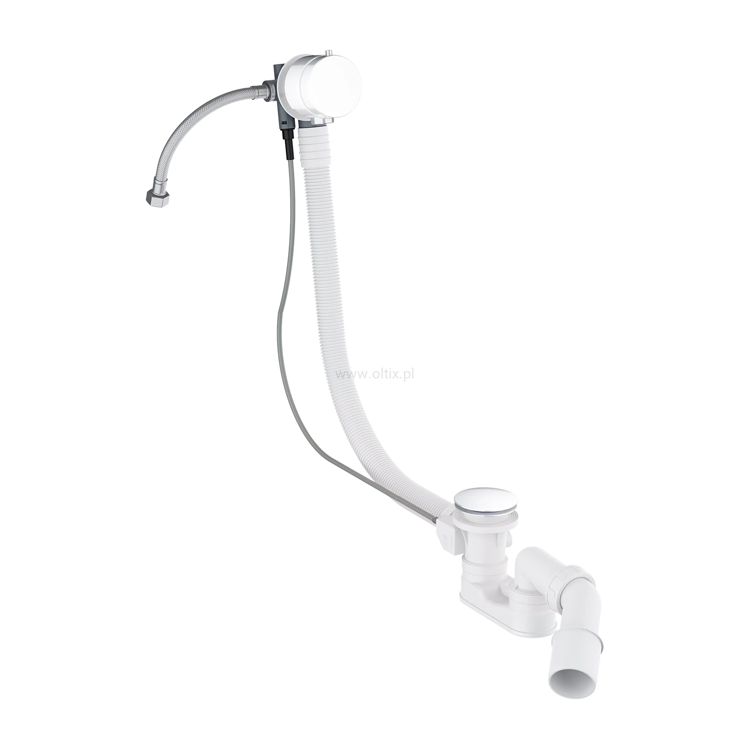CGS syfon wannowy przelewowo-odpływowo-napełniający, biały połysk TK132-PLUS-3.35+64-SBP