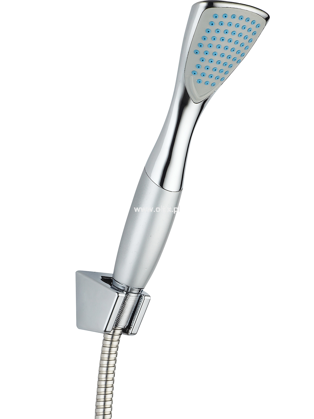 Delfin – natryskowy zestaw punktowy o stabilnej oraz solidnej konstrukcji z ciekawym trójkątny kształtem słuchawki. Dzięki odpowiednio wyprofilowanej rączce słuchawki doskonale utrzymamy ją nawet w mokrej, namydlonej dłoni. Funkcjonalność słuchawki gwarantuje łatwość wzięcia kąpieli. Słuchawka posiada deszczowy stłumień wypływu wody oraz system antykamień, dzięki któremu w prosty sposób usuniemy osad z wody. W zestawie znajduje się również wąż o długości 120 cm, który możemy podpiąć do baterii wannowej czy natryskowej.