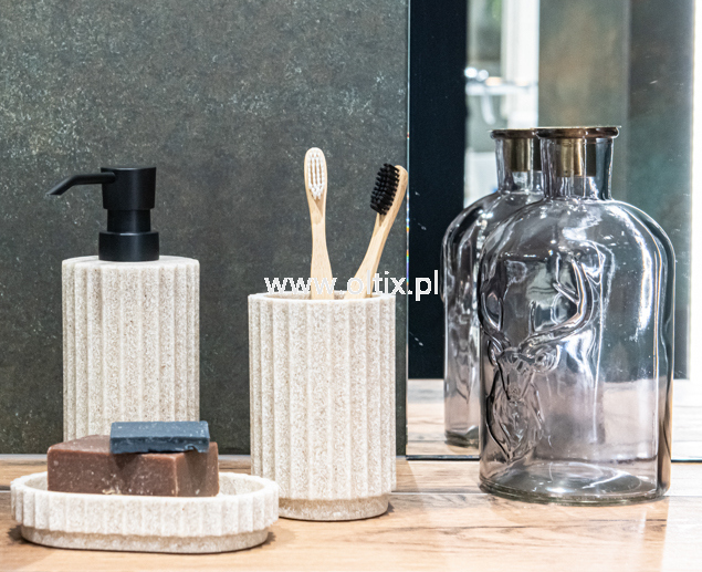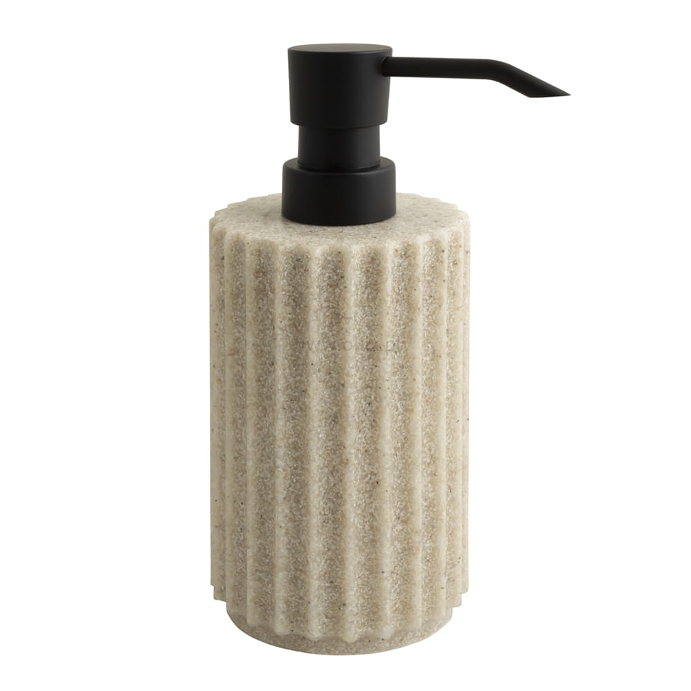 Dozownik mydła o pojemności 300 ml z serii SORRA. Wykonany został z wysokiej jakości tworzywa sztucznego - polyresinu, które zachowuje swój doskonały wygląd przez długi czas. Wyposażony został w funkcjonalną pompkę o nowoczesnym kształcie w kolorze czarnego matu, która dozuje odpowiednią ilość płynu.