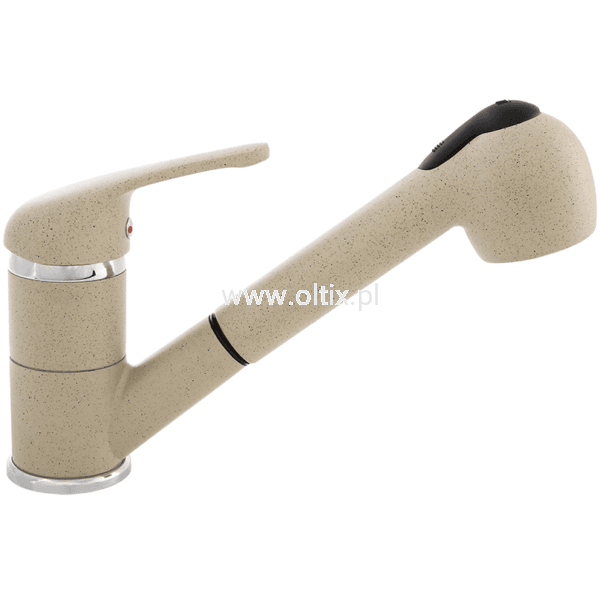 Seria Daga to niebanalne baterie kuchenne łączące w sobie kolor wraz z chromowymi elementami, intrygująca czerń oraz klasyczny beż. Takie wykończenie baterii sprawi, że produkt sprawdzi się w zestawieniu z czarnym jak i beżowym zlewozmywakiem granitowym. Bateria została wyposażona w wyciąganą wylewkę, co zapewnia pełną swobodę przy zmywaniu czy napełnianiu wodą dużych naczyń, regulator strumienia obficie napowietrza wodę, a wyciągana rączka natrysku upora się z każdym, nawet najtrudniejszym zadaniem. W wylewce znajduje się przełącznik, przy użyciu którego możliwe jest płynne przełączanie pomiędzy strumieniami.