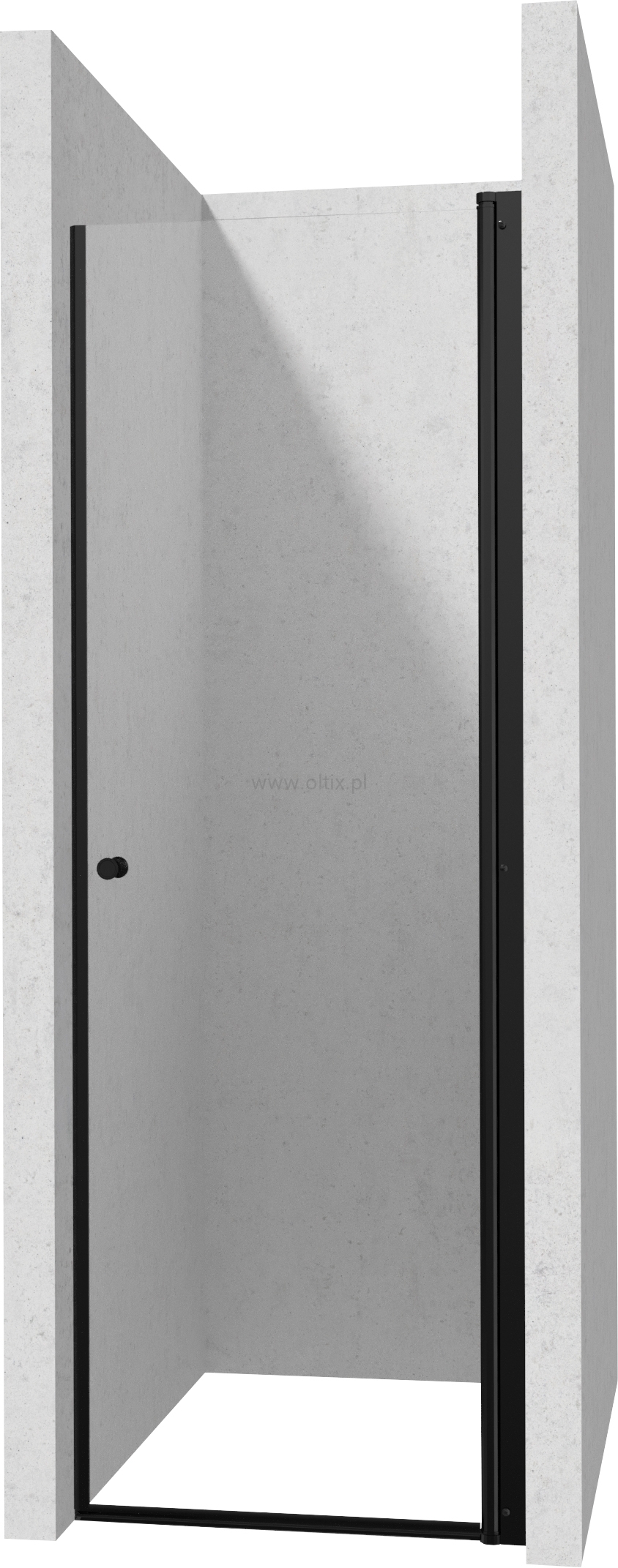 Profil do drzwi wnękowych występuje w czarnym i chromowym kolorze i idealnie pasuje do pojedynczych drzwi prysznicowych systemu Kerria Plus w tym samym wykończeniu.