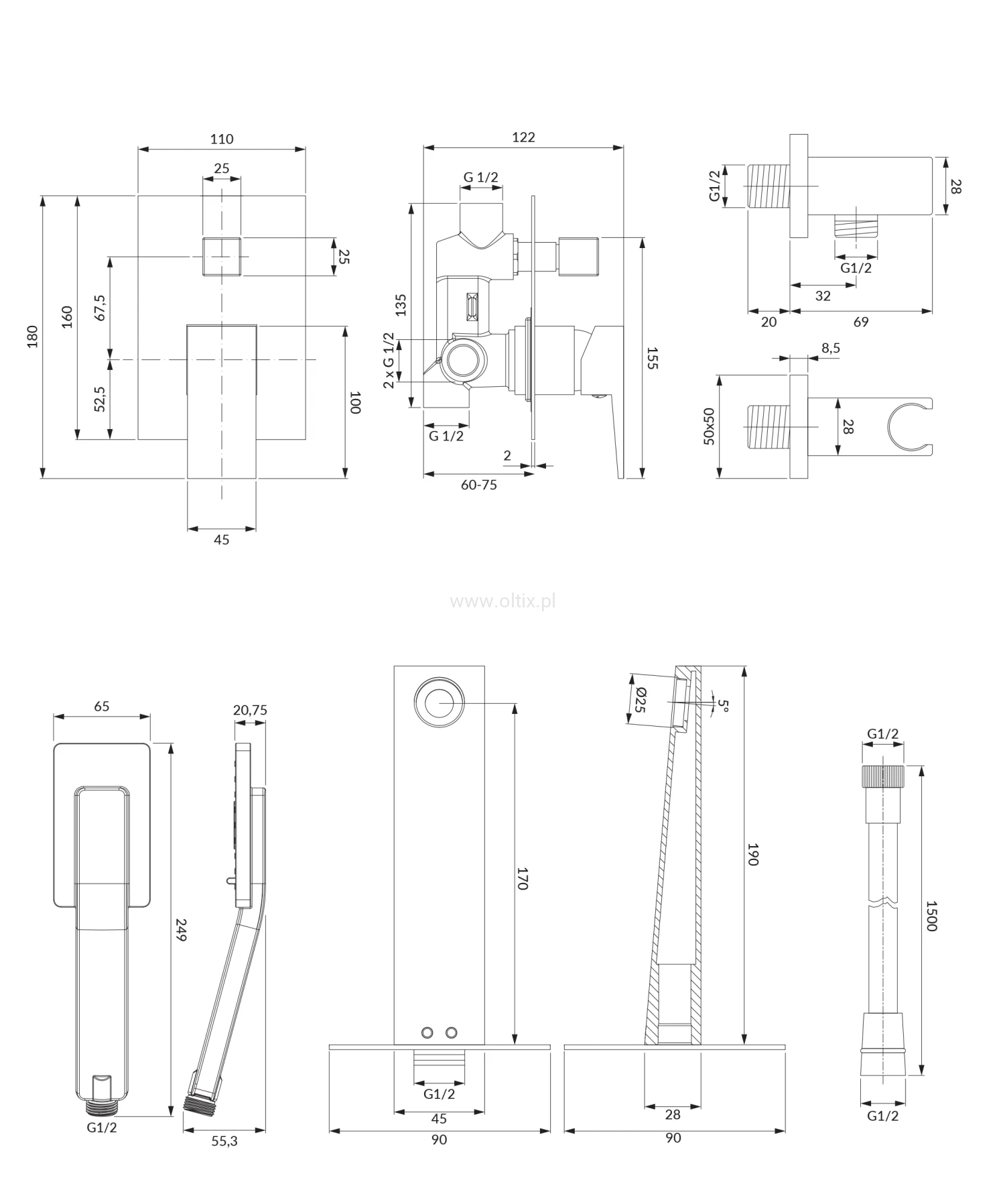 FRESH system wannowy podtynkowy, chrom połysk SYSFRW01CR