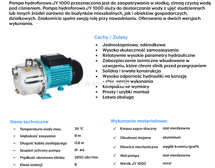 - Wałek pompy: stal nierdzewna