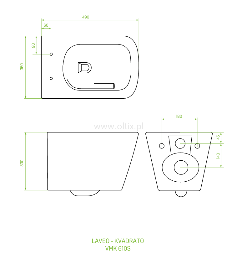 Kvadrato CycleOn 2.0 - miska ustępowa wisząca bezkołnierzowa VMK_610S
