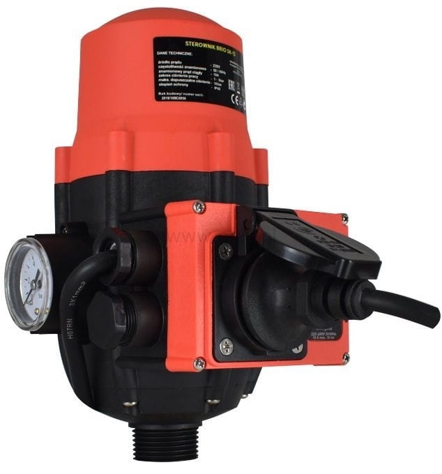 BRIO SK-13 automatycznie załącza i zatrzymuje pompę odpowiednio w przypadku spadku ciśnienia i zatrzymania przepływu. Ponadto BRIO SK-13 zatrzymuje pompę przy braku wody, zabezpieczając ją przed uszkodzeniem podczas suchobiegu. Urządzenie BRIO SK-13 nie ma możliwości regulacji ciśnienia wyłączania, dlatego w warunkach roboczych pompa będzie się wyłączała po uzyskaniu maksymalnych parametrów(ciśnienia).