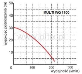 Może doskonale służyć do podlewania, ponieważ wytwarza ciśnienie w instalacji tłocznej.Pompy MULTI WQ 1100 wyposażone są w regulowane sterowanie pływakowe.