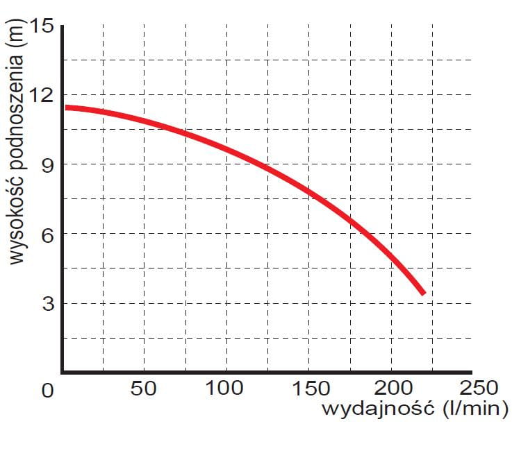 - wydajność pompy zależy od długości i średnicy węża. Im większa długość i mniejsza średnica, parametry na końcu węża będą niższe