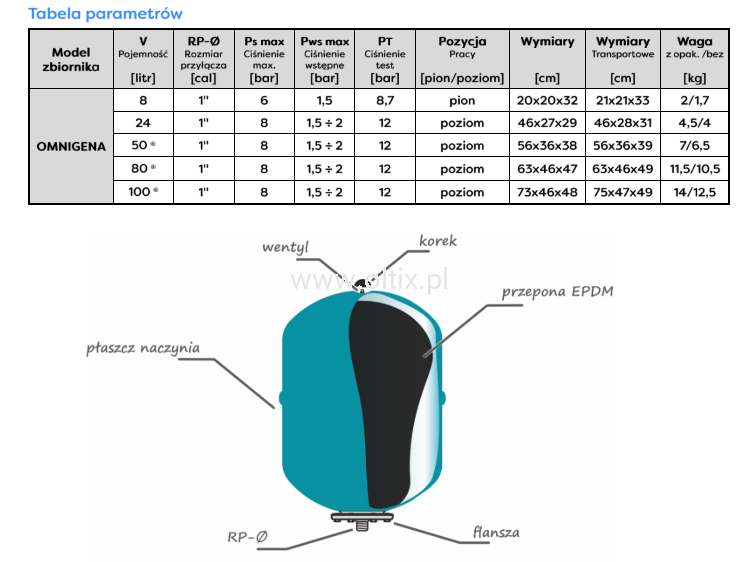OMNIGENA Zbiornik ciśnieniowy hydroforowy przeponowy 100 L poziomy
