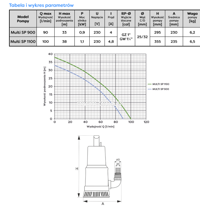 POMPA ZATAPIALNA MULTI SP 1100 230V