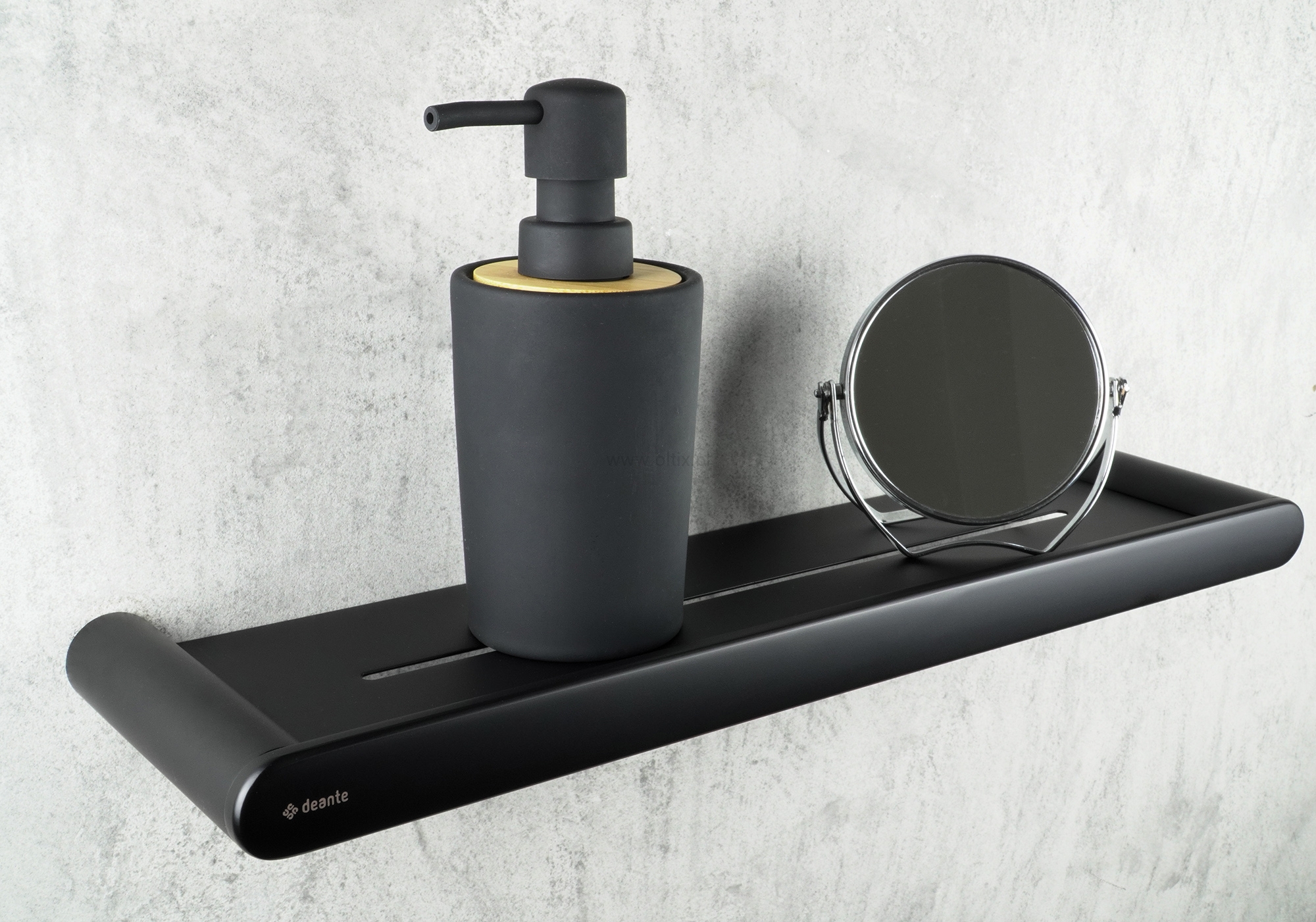 Półka ścienna z kolekcji Round sprawdzi się zarówno w kabinach prysznicowych, jak i w okolicy wanny, czyli wszędzie tam, gdzie potrzebne jest dodatkowe miejsce na kosmetyki. Wykonana ze stali nierdzewnej, wykończona w eleganckim, czarnym macie będzie doskonale komponować się z bateriami i dodatkami w tym samym kolorze.