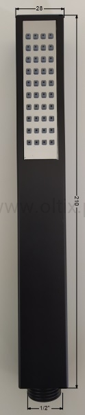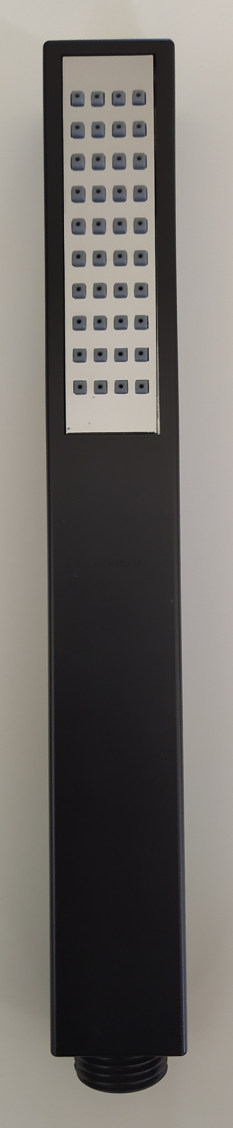 Słuchawka Square ma prostokątny kształt i przyjemny deszczowy strumień. Słuchawka wyposażona została w system Anti-calc, który przeciwdziała osadzaniu się kamienia i ułatwia utrzymanie jej w czystości. Produkt wykończony jest w matowym, czarnym kolorze i idealnie pasuje do armatury w tym samym kolorze. Słuchawka pasuje do wszystkich węży z końcówką 1/2''.