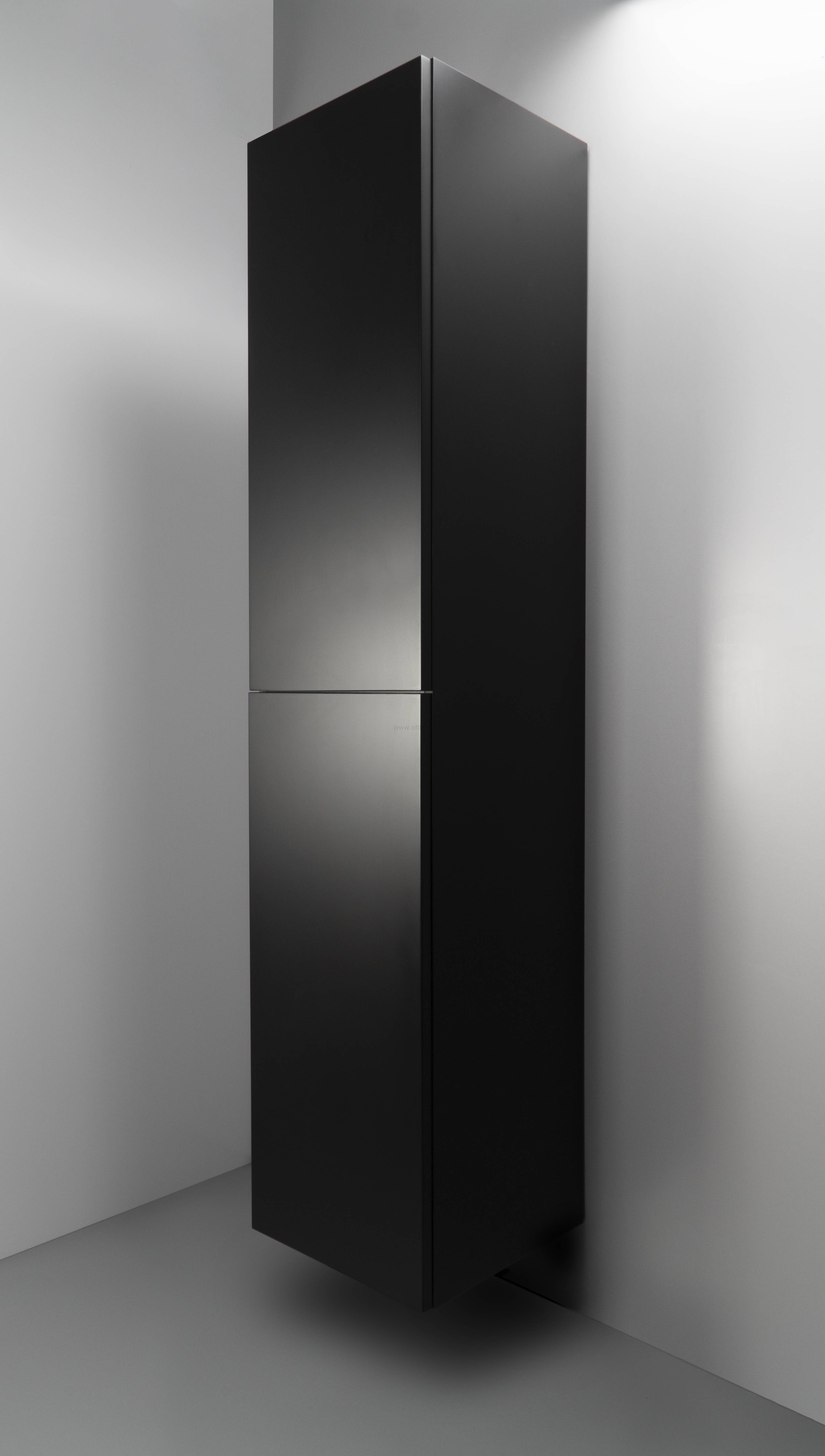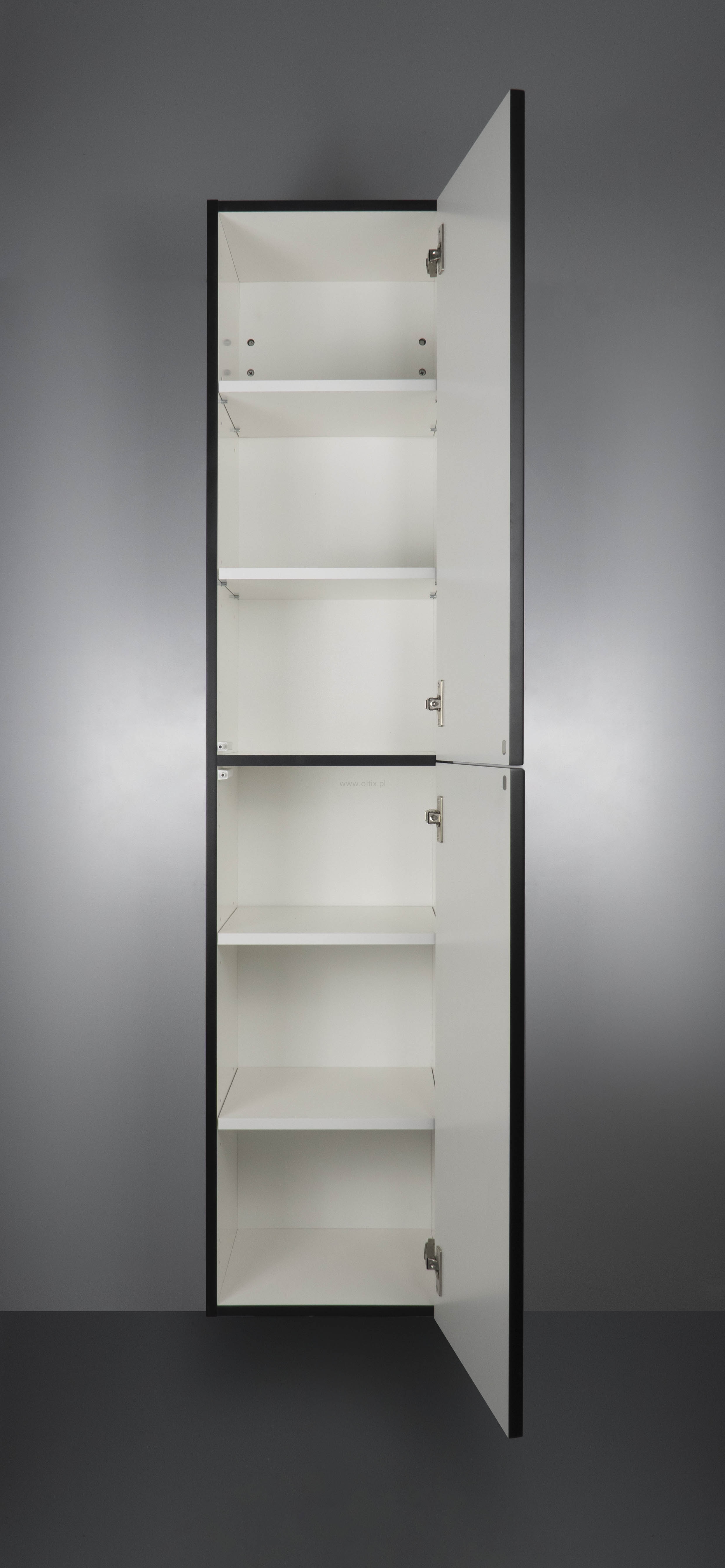 Czarny matowy słupek łazienkowy Prizma o wymiarach 350x350x1600 to stylowa opcja dla osób ceniących wyrafinowane, nowoczesne wnętrza. Jego minimalistyczny, bezuchwytowy design podkreśla elegancję i dodaje wnętrzu odrobinę luksusu. Model ten, dzięki wiszącej konstrukcji, sprawia, że łazienka wygląda bardziej przestronnie i schludnie. Co więcej, drzwi szafek można zamontować w zależności od potrzeb użytkownika – na lewą lub prawą stronę, co zwiększa jego funkcjonalność. Powierzchnia słupka pokryta jest wysokiej jakości lakierem UV, co gwarantuje jego trwałość. Słupek podzielony jest na dwie szafki, a każda z nich wyposażona jest w dwie regulowane półki. Polska produkcja oraz dostawa mebla w pełni złożonego w kartonie to pewność solidności i wygody użytkowania.