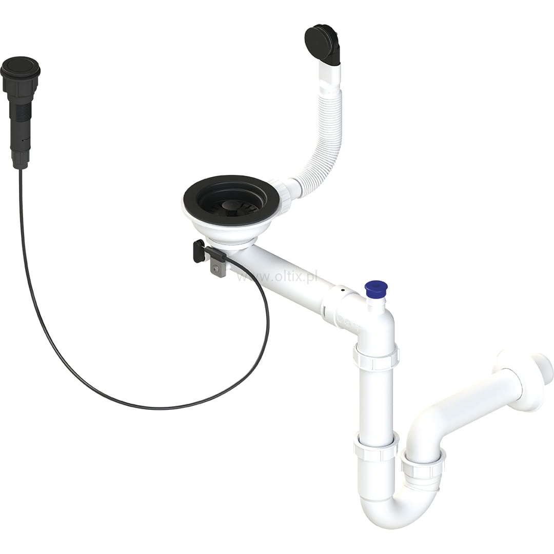 Czarny syfon do zlewozmywaków jednokomorowych wykonanych z granitu przeznaczony jest do nowocześnie urządzonych kuchni. Eleganckiego charakteru dodają mu gładka osłona przelewu oraz płaski korek sterowany przyciskiem, dzięki któremu bez problemu zamkniemy i otworzymy odpływ wody nawet mokrymi rękoma. Syfon typu Space Saving zaprojektowany jest w taki sposób, aby pozostawiać jak najwięcej miejsca w szafce pod zlewem i umożliwić wygodne ułożenie koszy do segregacji odpadów czy przechowywane środków czystości. Wyjmowane sitko pozwala na łatwe opróżnienie z zalegających w nim zanieczyszczeń i resztek. Do syfonu można podłączyć zmywarkę.
