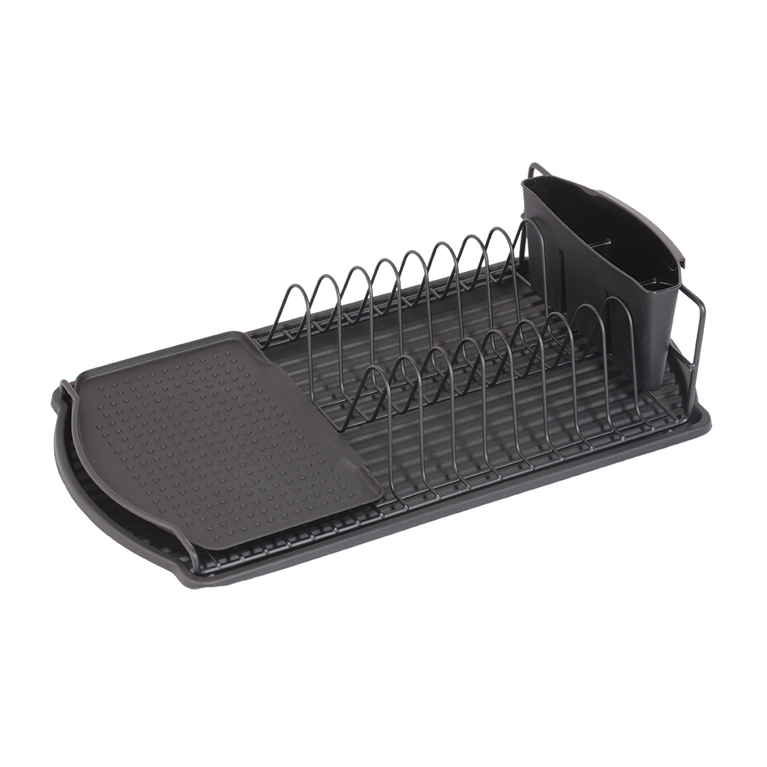 Suszarki Torino to stalowa malowana proszkowo na kolor czarny, wolnostojąca suszarka do naczyń. Matowe wykończenie sprawia, że suszarka oprócz swojej funkcjonalności zyskuje na estetycznym wyglądzie. Niezwykle praktyczna bez problemu zmieści się na blacie kuchennym czy w szafce nad zlewozmywakiem. Torino to model, który posiada dodatkową podkładkę, dzięki której możemy suszyć kubki oraz szklanki. Przy pozbyciu się wody ze sztućców i innych przyborów kuchennych przydatne będą podzielone na trzy części pojemniki z tworzywa sztucznego, w których przybory kuchenne zachowają pionowe ustawienie. Taca będąca w zestawie z suszarką zabezpiecza blat przed wodą spływającą z naczyń, dzięki czemu nie musimy martwić się o ewentualne uszkodzenia. Czarne suszarki Torino to efektowna ozdoba połączona z niezwykłą funkcjonalnością.