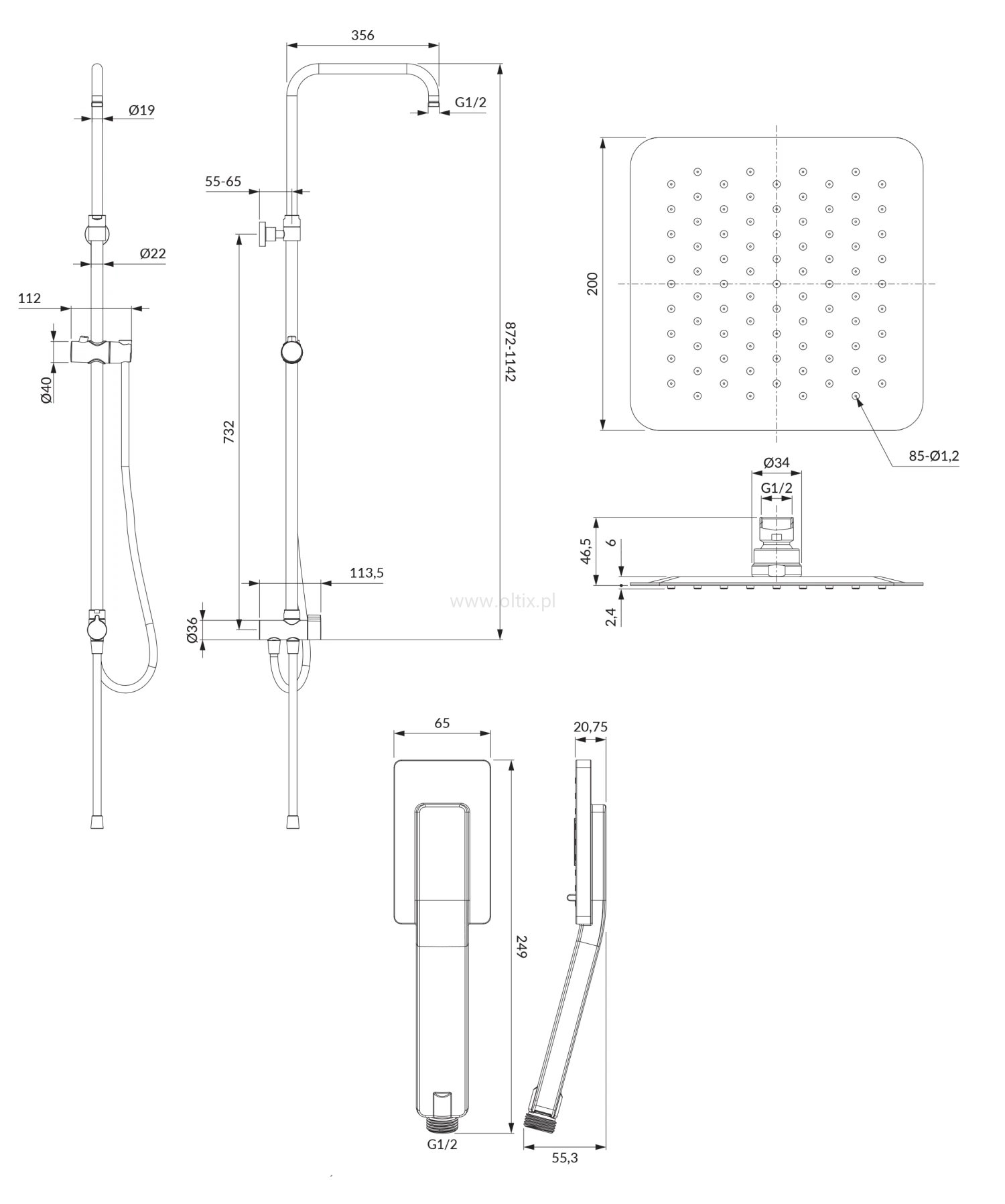 TORONTO kolumna prysznicowa natynkowa, chrom połysk SYSTORONTOCR