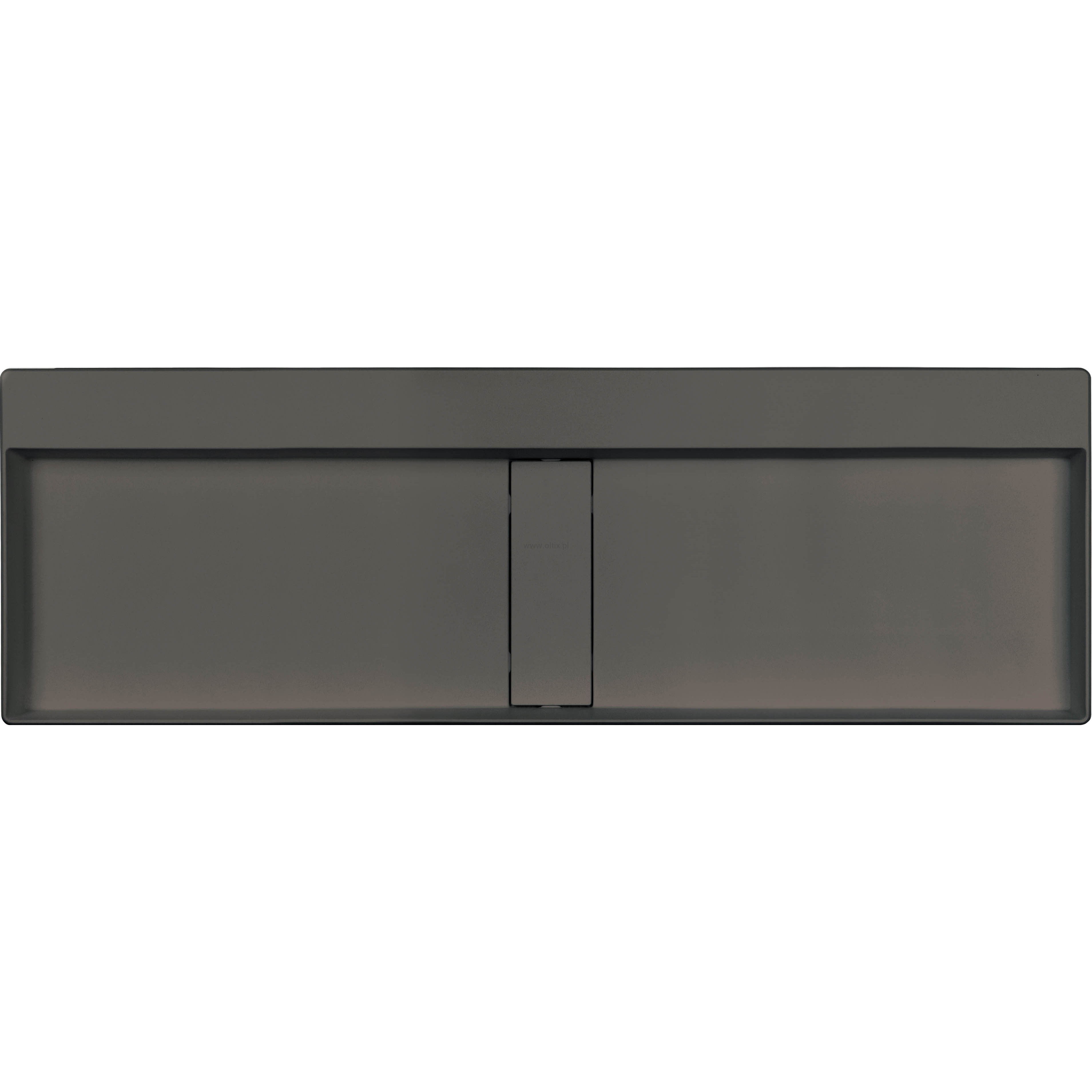 Największy model Blur w kolorze antracyt metalik zachwyca przestronnością i funkcjonalnością. Szerokość 1200 mm umożliwia wygodne korzystanie przez dwie osoby jednocześnie, co czyni tę umywalkę doskonałym rozwiązaniem do przestronnych łazienek rodzinnych. Jej elegancki antracytowy odcień z metalicznym wykończeniem pięknie kontrastuje z jasnymi elementami wnętrza, wprowadzając nowoczesny styl i elegancję. Granitowa powierzchnia wzbogacona jonami srebra zapewnia higieniczne użytkowanie, a hydrofobowe wykończenie ułatwia utrzymanie czystości. Maskownica odpływu estetycznie ukrywa elementy instalacyjne, nadając umywalce nowoczesny i minimalistyczny charakter. Może być zaprojektowana zarówno z myślą o jednej baterii, idealnej dla indywidualnego użytkownika, jak i z dwiema bateriami, co pozwala na komfortowe korzystanie przez dwie osoby jednocześnie. Ze względu na technologię produkcji, odcień maskownicy może się nieznacznie różnić od koloru umywalki.