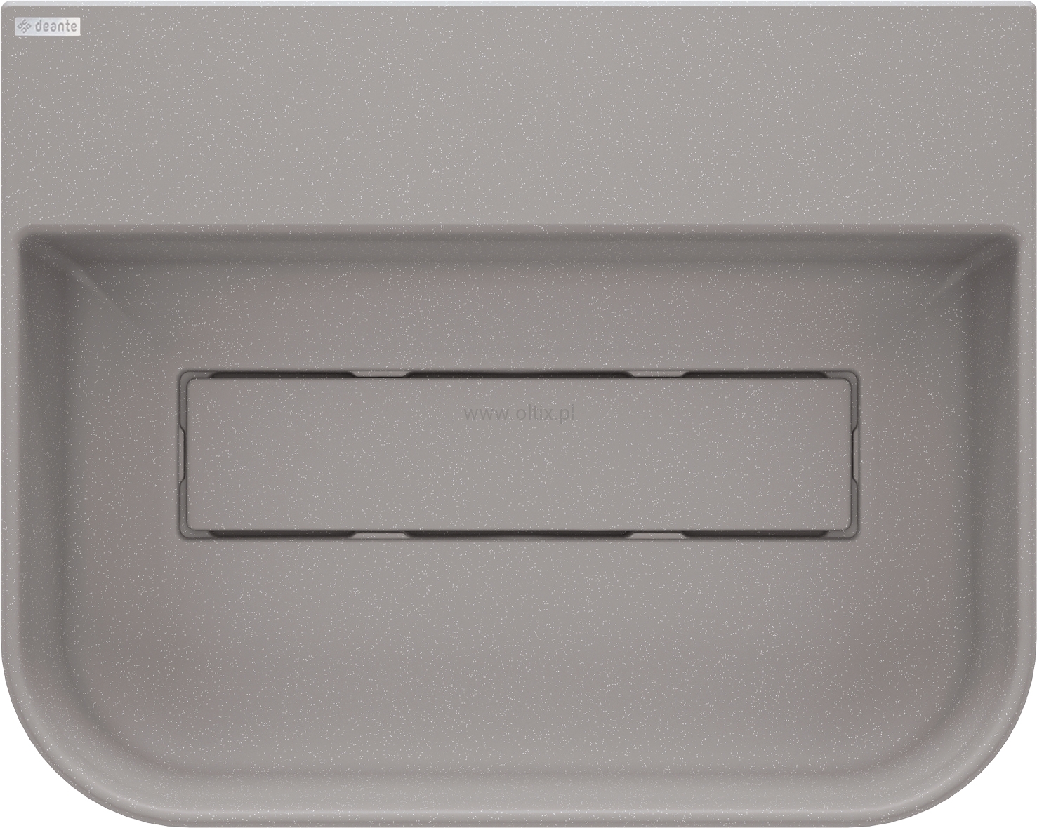 Szara umywalka granitowa z maskownicą przelewu charakteryzuje się nowoczesnym i eleganckim designem. Posiada zaoblone brzegi z przodu, co nadaje jej miękki, estetyczny wygląd i zwiększa komfort użytkowania. Wykonana z granitu Deante, jest odporna na uderzenia, wysoką temperaturę, przebarwienia oraz szok termiczny. Powierzchnia umywalki dzięki właściwościom hydrofobowym odpycha cząsteczki wody, co ułatwia utrzymanie jej w czystości. Natomiast jony srebra dodane do masy, zapewniają działanie antyseptyczne. Maskownica przelewu, precyzyjnie wykonana z granitu w tym samym kolorze co umywalka, podkreśla elegancję i spójność całej formy. Umywalka posiada jedno podfrezowanie pod baterię.