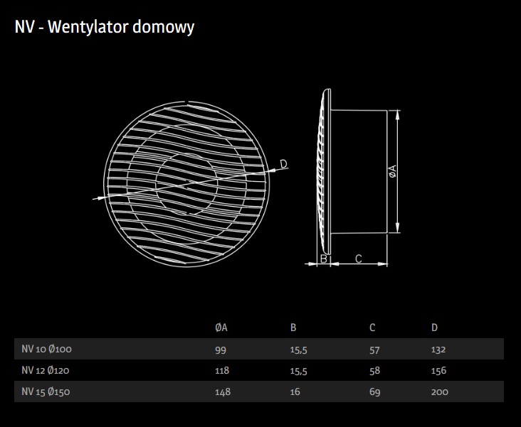 Wentylator osiowy o wymiarach fi 100 mm. Ma bardzo niskie zapotrzebowanie na energię. Wyposażony w łożyska kulkowe, które nie tylko zmniejszają hałas, ale także zapewniają długi okres bezawaryjnej pracy wentylatora. Nowoczesny wygląd pozwala na zastosowanie go w nawet najbardziej wymagających wnętrzach. Wentylator do montażu sufitowego lub ściennego. Wyprodukowany w Polsce i oparty na polskiej elektronice.