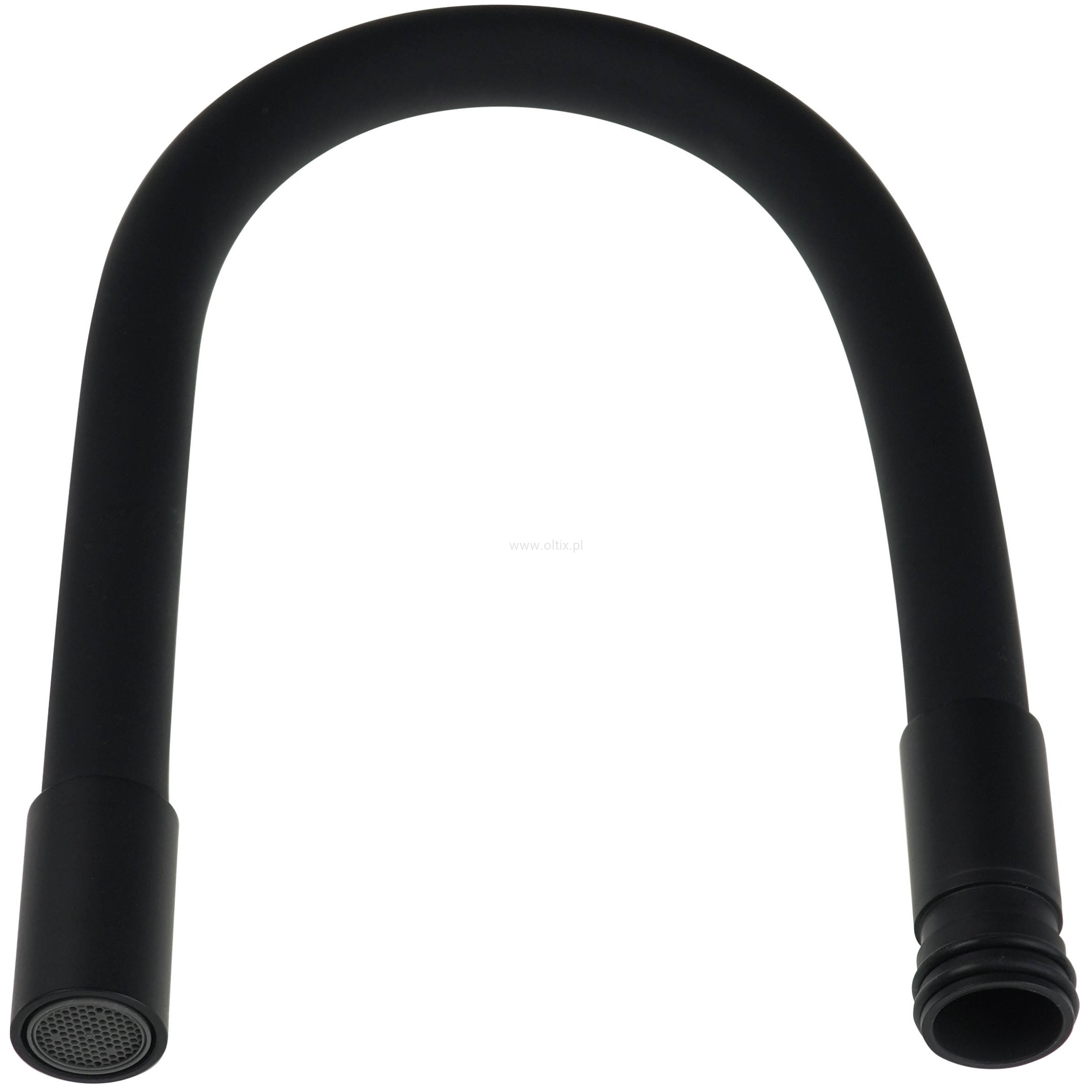 Elastyczna wylewka to część zamienna do kuchennej baterii z serii Luno. Gięta wylewka charakteryzuje się dużym zasięgiem i łatwością użytkowania. Dzięki temu można wygodnie napełnić wodą wysokie naczynia czy opłukać owoce i warzywa. Wylewka wyposażona jest w aerator napowietrzający strumień wody. Matowy, czarny kolor doskonale pasuje do ciemnych granitowych zlewozmywaków.