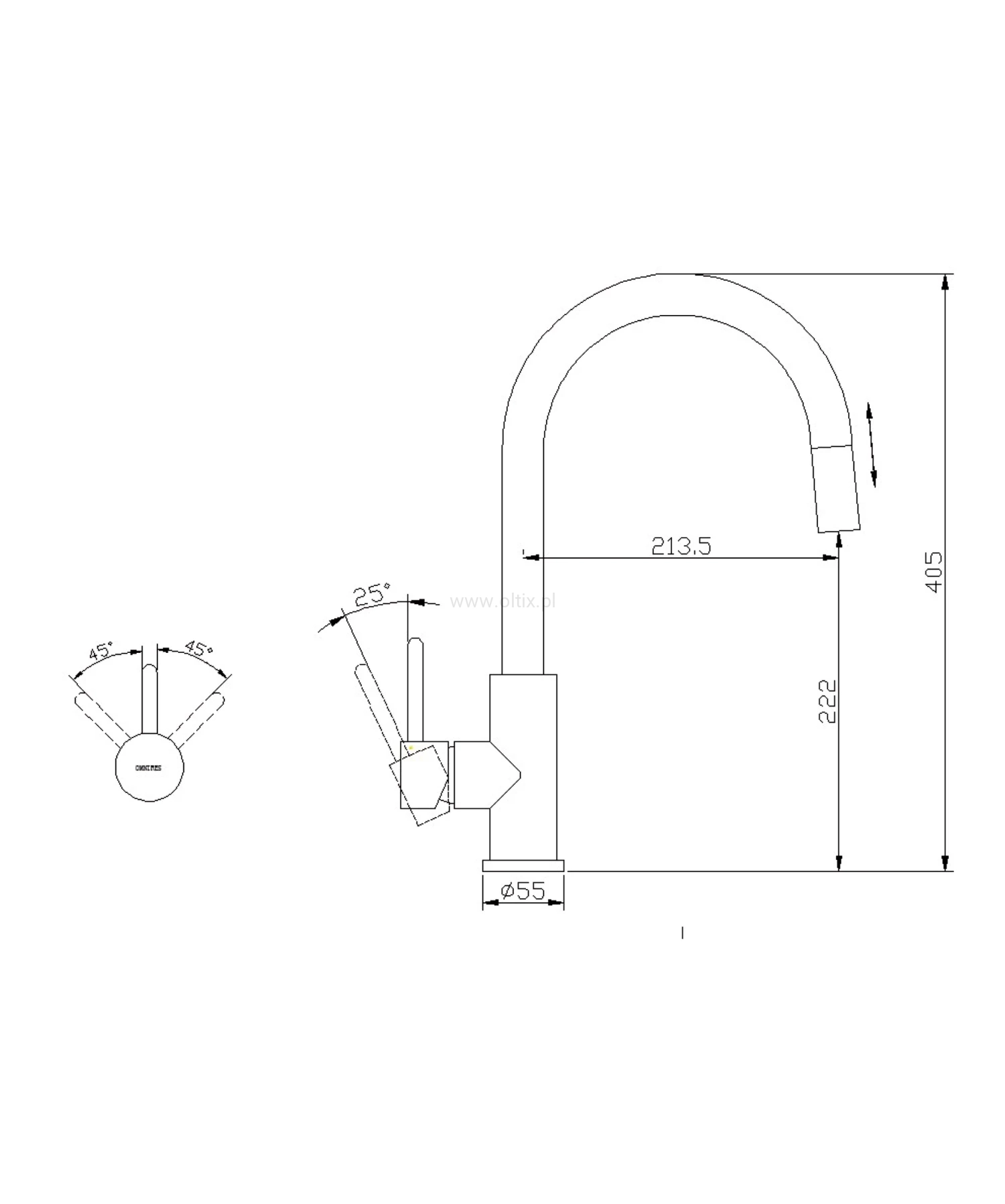 Bateria kuchenna OMNIRES Y zachwyca czystą linią i nieskazitelną formą będącą wyrazem pasji w dążeniu do ideału. Ponadczasowy, perfekcyjnie dopracowany wzór, bazujący na kształcie koła i stworzony w duchu minimalizmu, daje maksymalne możliwości aranżacyjne. Bateria wyposażona jest w obrotową, wyciąganą wylewkę, co zwiększa zasięg strumienia wody i wygodę użytkowania. Całkowita wysokość baterii to 40,5 cm.