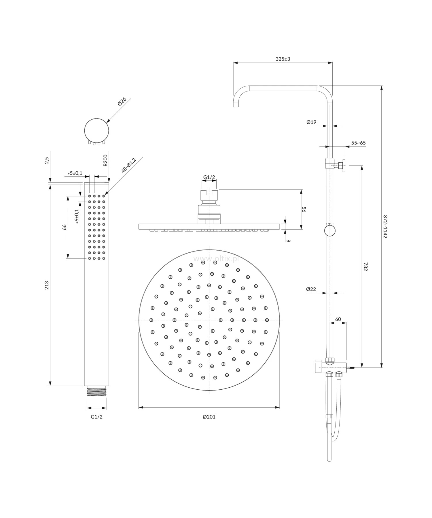 Y kolumna prysznicowa natynkowa, chrom połysk SYSYCR