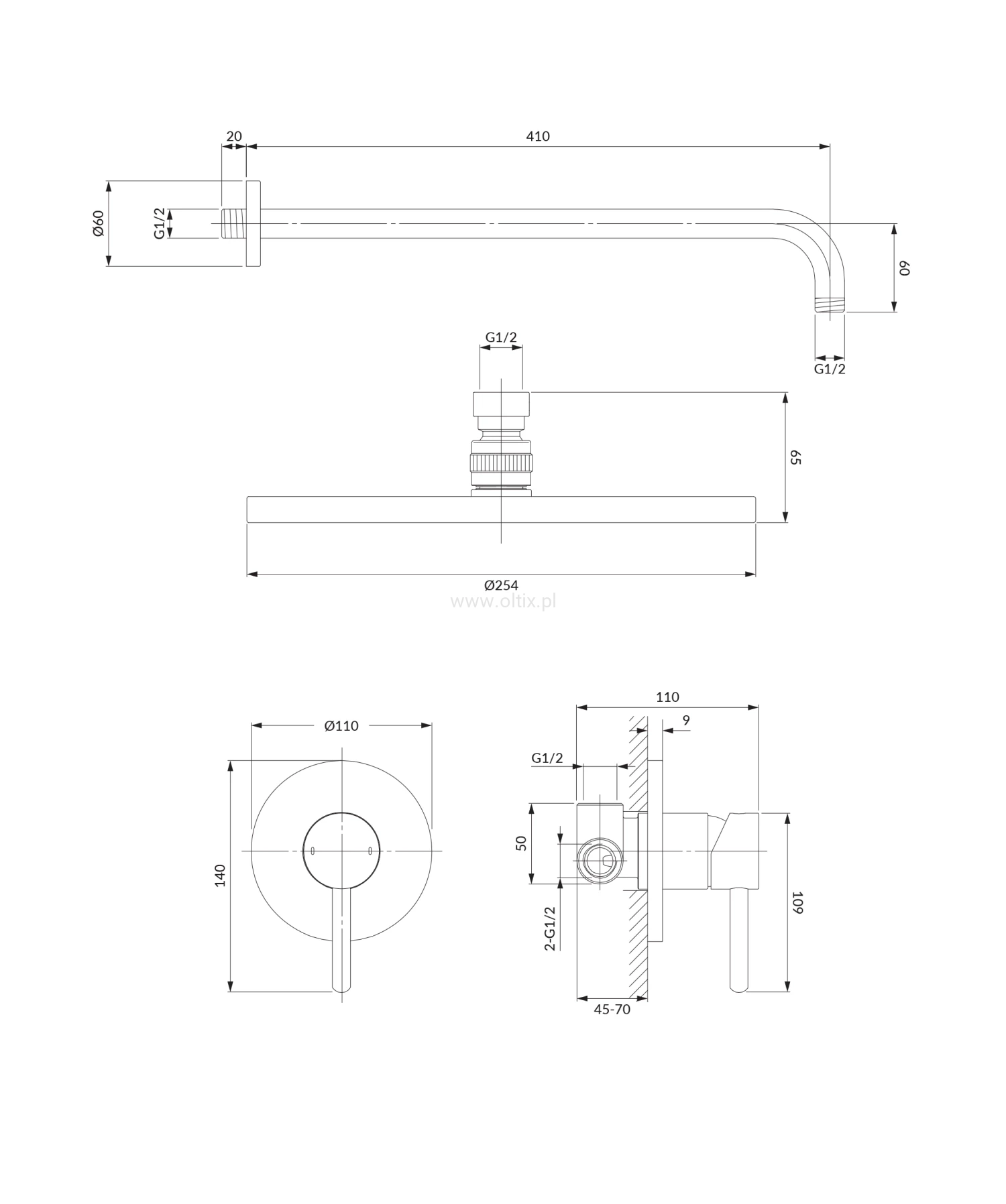 Y system prysznicowy podtynkowy, czarny półmat SYSY36BL