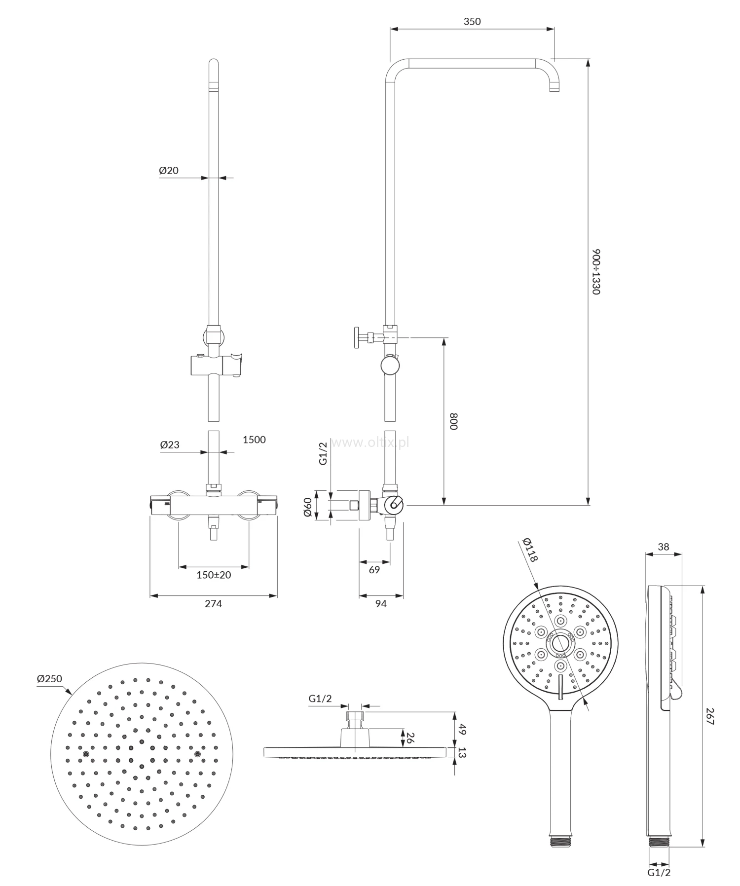 Y termostatyczny system prysznicowy natynkowy, chrom połysk SYSY10-N-6CR