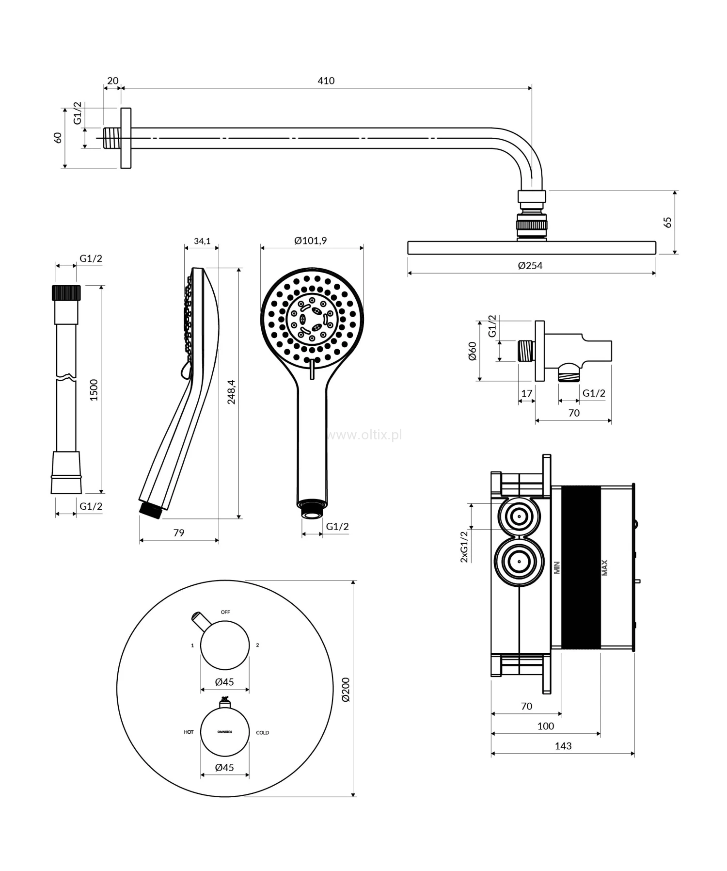 Y termostatyczny system prysznicowy podtynkowy, złoty połysk SYSYT05GL