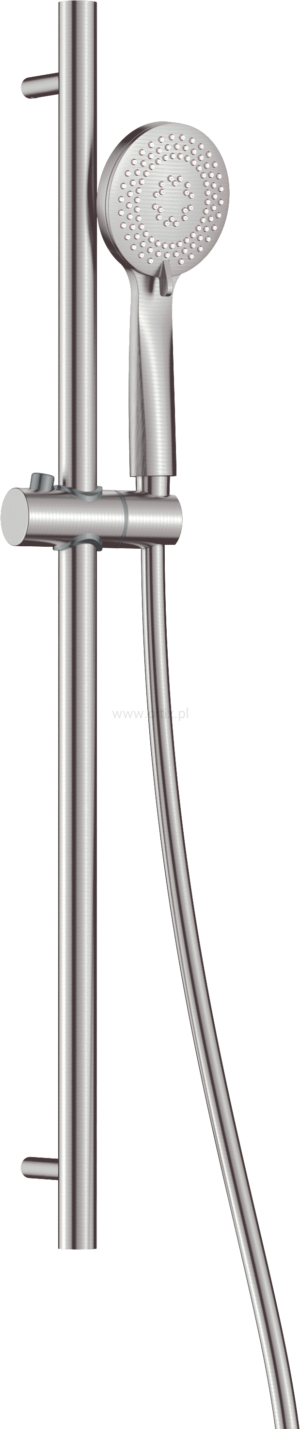 W skład zestawu Arnika wchodzi słuchawka prysznicowa, wąż natryskowy oraz drążek. Słuchawka wyposażona jest w 3 strumienie: deszczowy, mieszany, hydromasaż oraz system anti-calc, który ułatwia czyszczenie produktu. Stalowy drążek posiada uchwyt z regulacją kąta nachylenia słuchawki, dzięki czemu możesz ją dowolnie ustawić. Natomiast wąż nie skręca się, dzięki zastosowaniu systemu anti-twist. Wszystkie elementy wykończone są w efektownym kolorze stali szczotkowanej. Należy go podłączyć do baterii wannowej lub natryskowej.