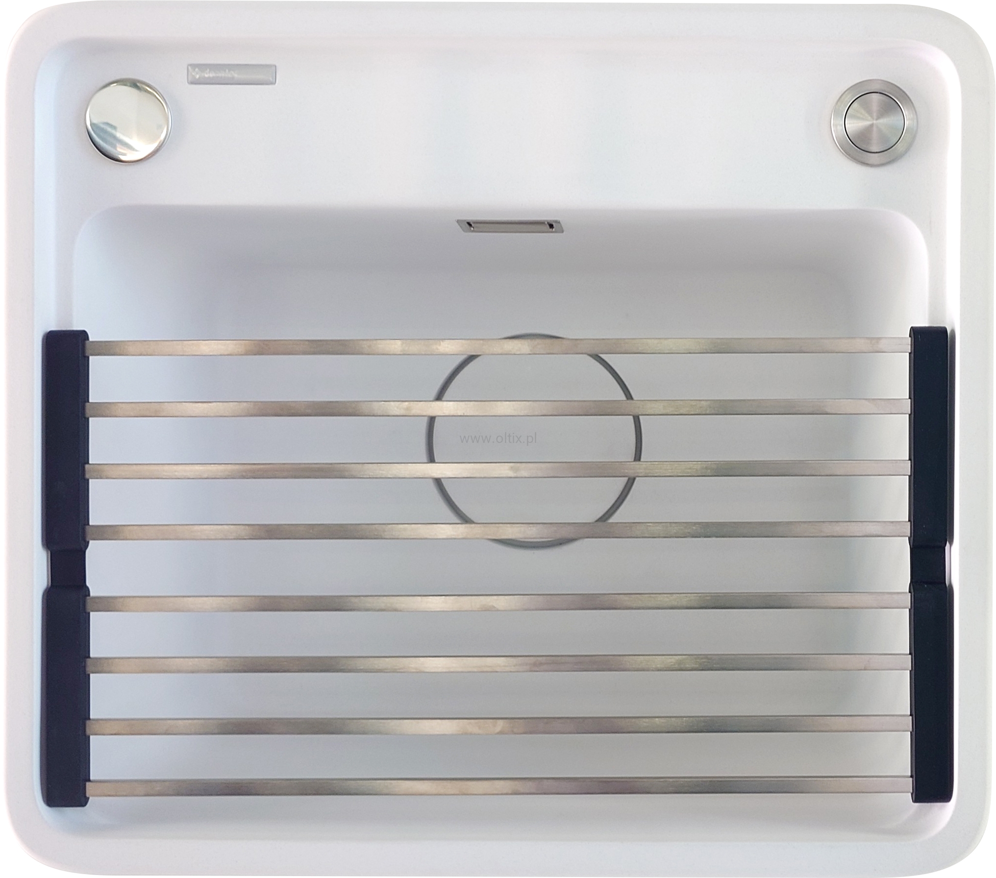 Wykonana z tego samego materiału co zlewozmywak, idealnie się z nim komponuje, tworząc spójną i harmonijną całość. Ten mały detal znacznie podnosi estetykę kuchni, tworząc atmosferę wyrafinowanej elegancji. Maskownica, współpracuje z funkcja automatycznego zamykania przelewu.