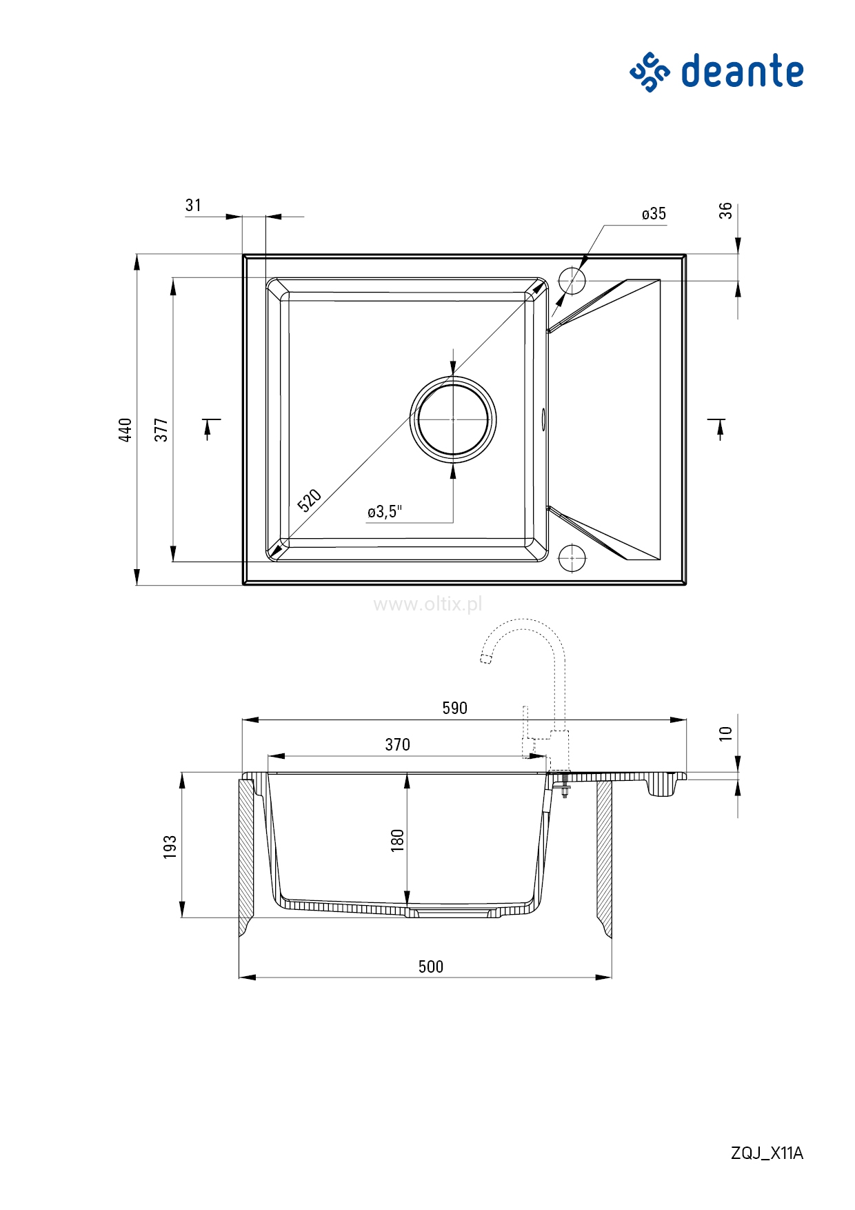 Zlewozmywak granitowy 1-komorowy z ociekaczem Deante Evora ZQJ N11A