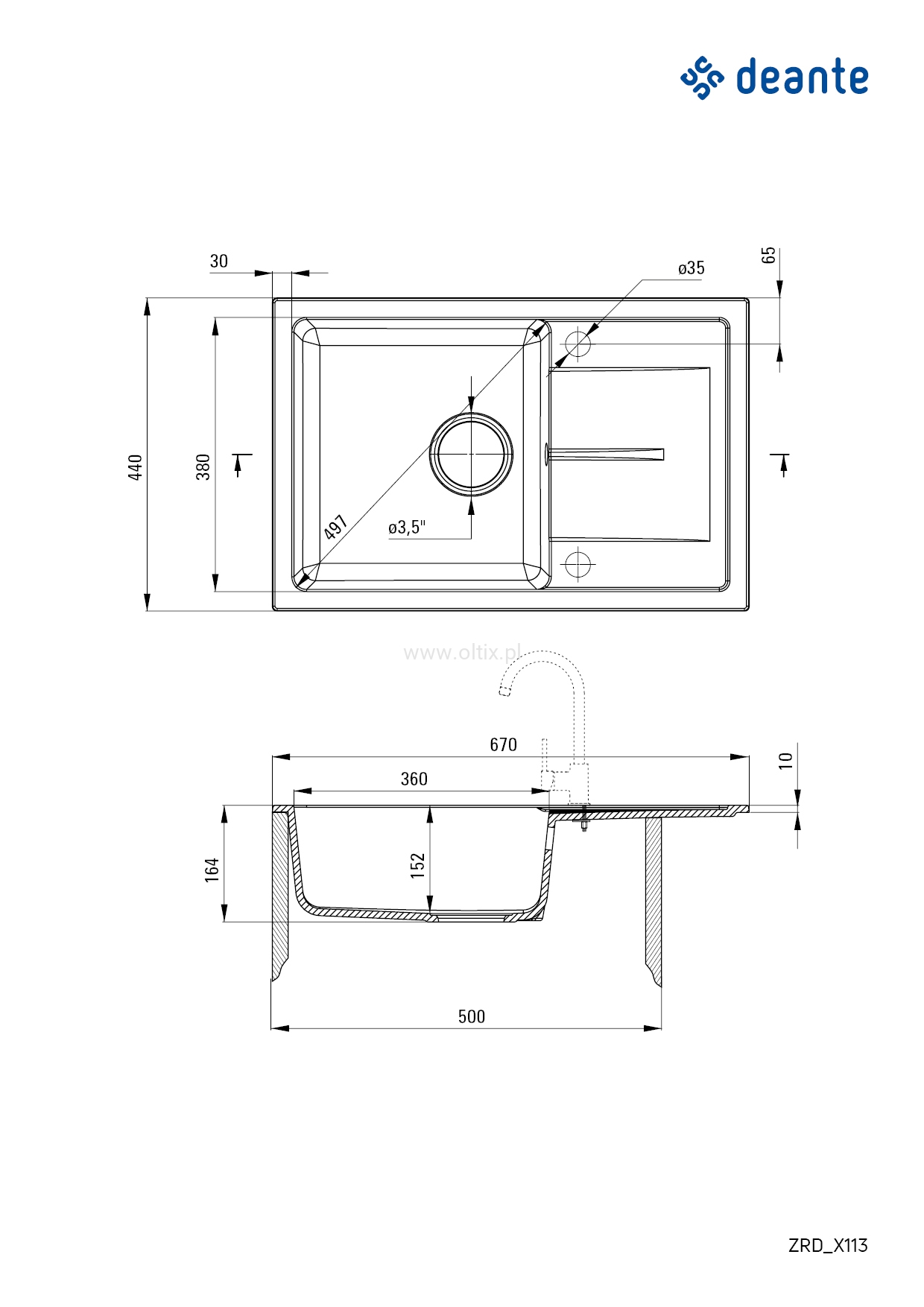 Zlewozmywak granitowy 1-komorowy z ociekaczem Deante Leda ZRD S113