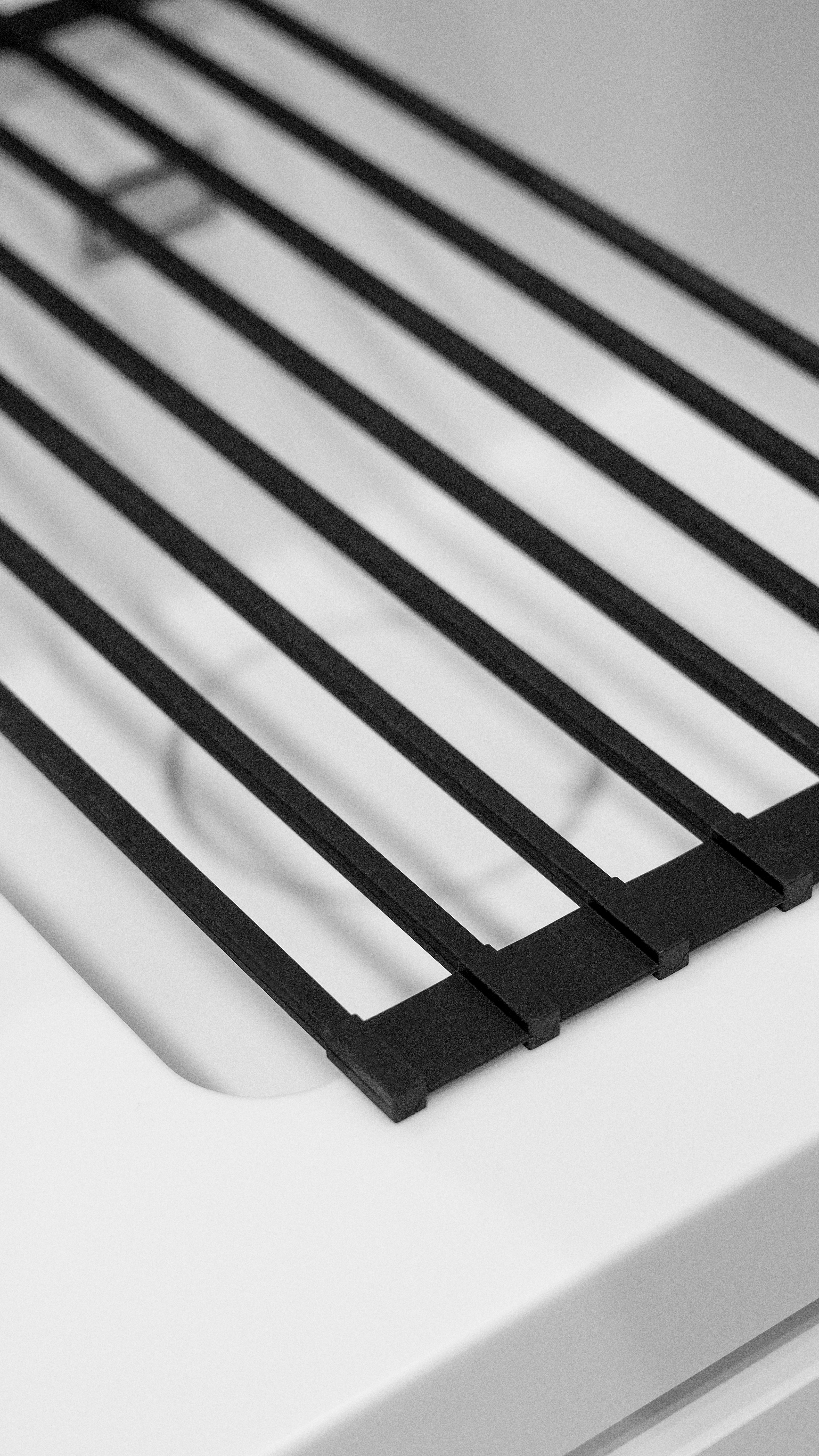 Zlewozmywak został wyposażony w pomysłowy syfon „Space Saver”. Jeśli do tej pory denerwowały Cię kolanka i rury zajmujące większość przestrzeni w szafce, jest to rozwiązanie dla Ciebie. Specjalna konstrukcja i teleskopowa budowa pozwala dostosować kształt syfonu do potrzeb. Dzięki temu w szafce prosto wygospodarować dużo więcej miejsca na przykład na domowe przetwory czy kosze do segregacji odpadów. Istnieje też możliwość podłączenia do syfonu pralki lub zmywarki. I co najważniejsze — syfon dostajesz w zestawie!
