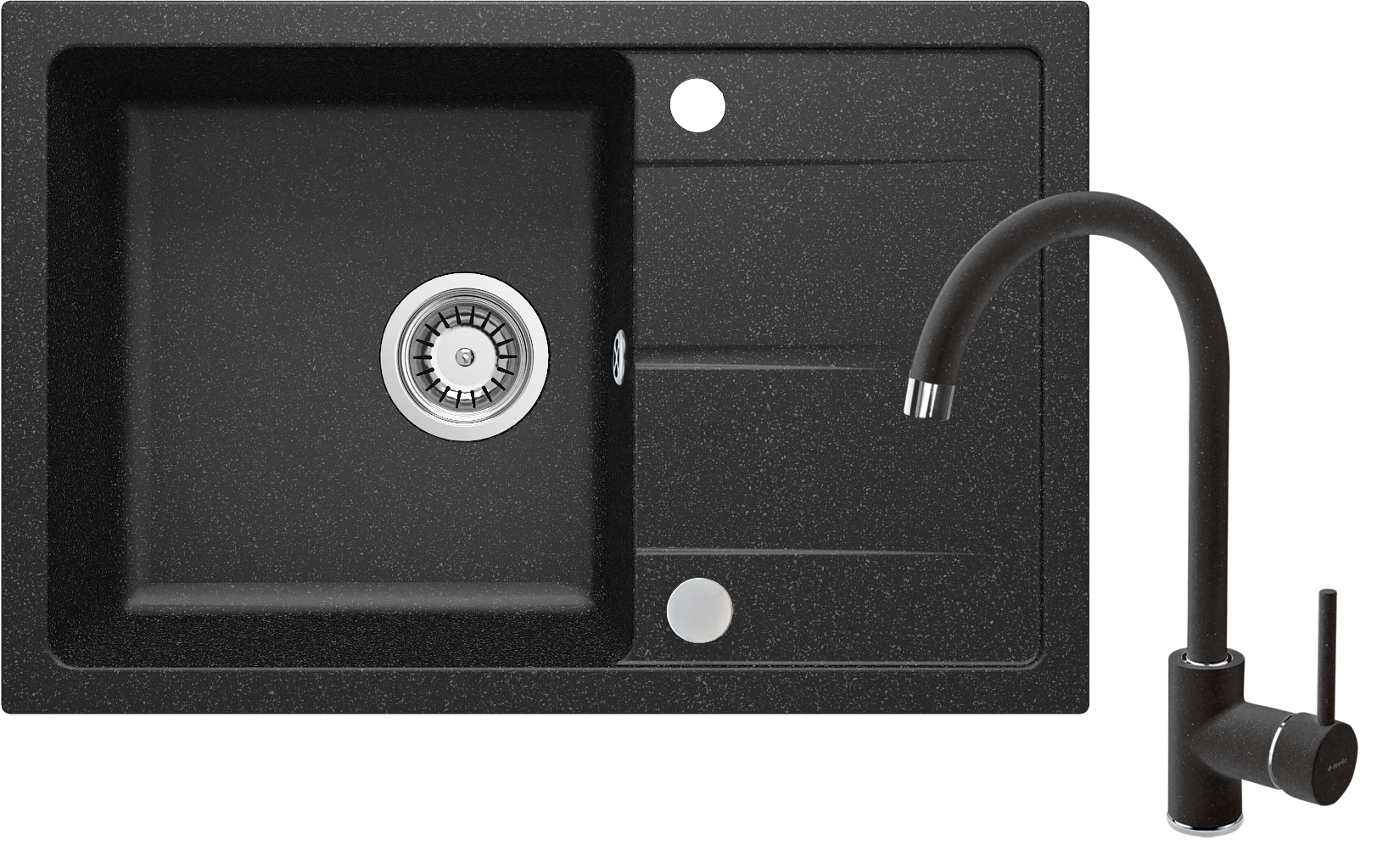 Zlewozmywak granitowy z baterią 1-komorowy z ociekaczem Deante Leda ZRDA2113