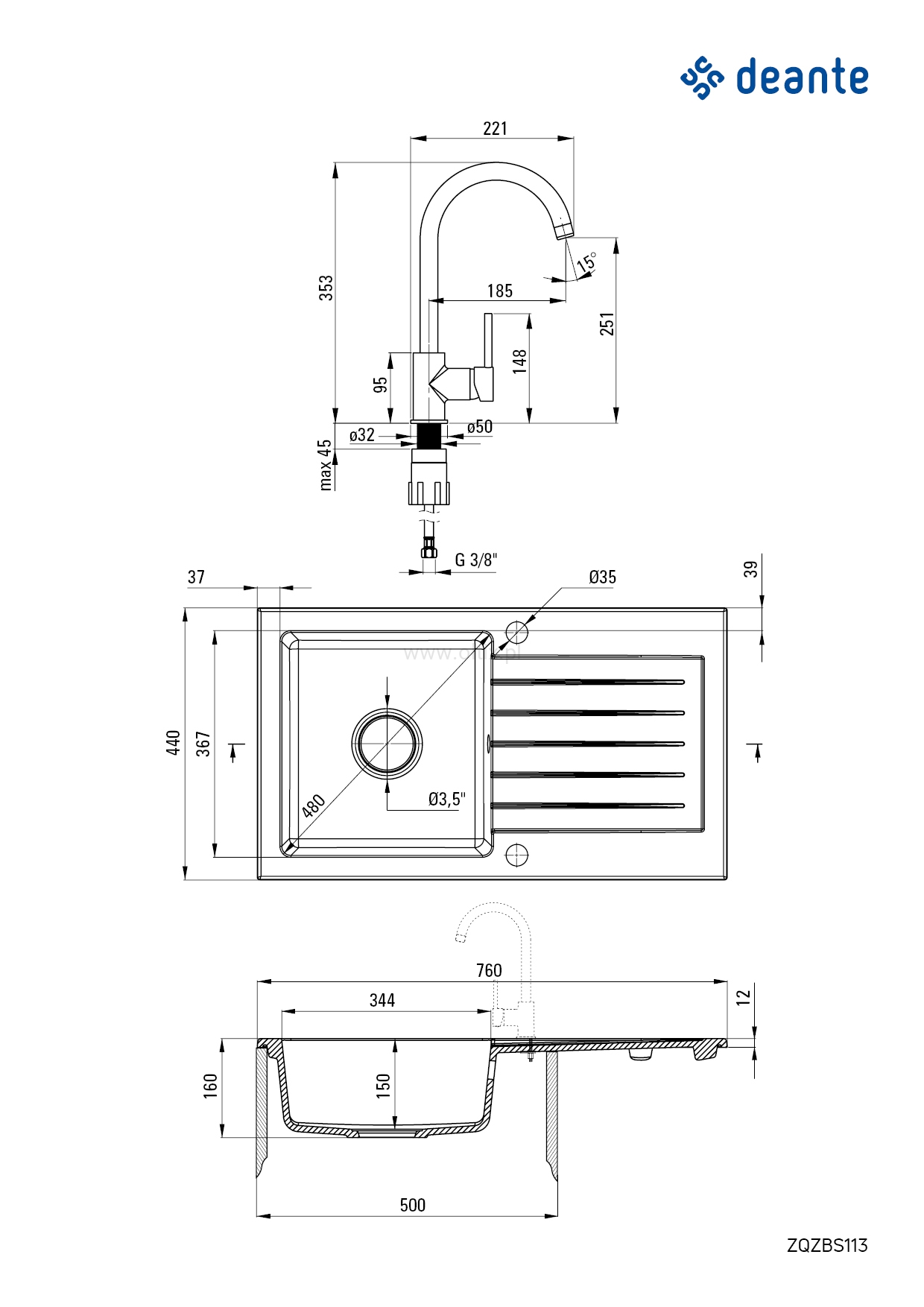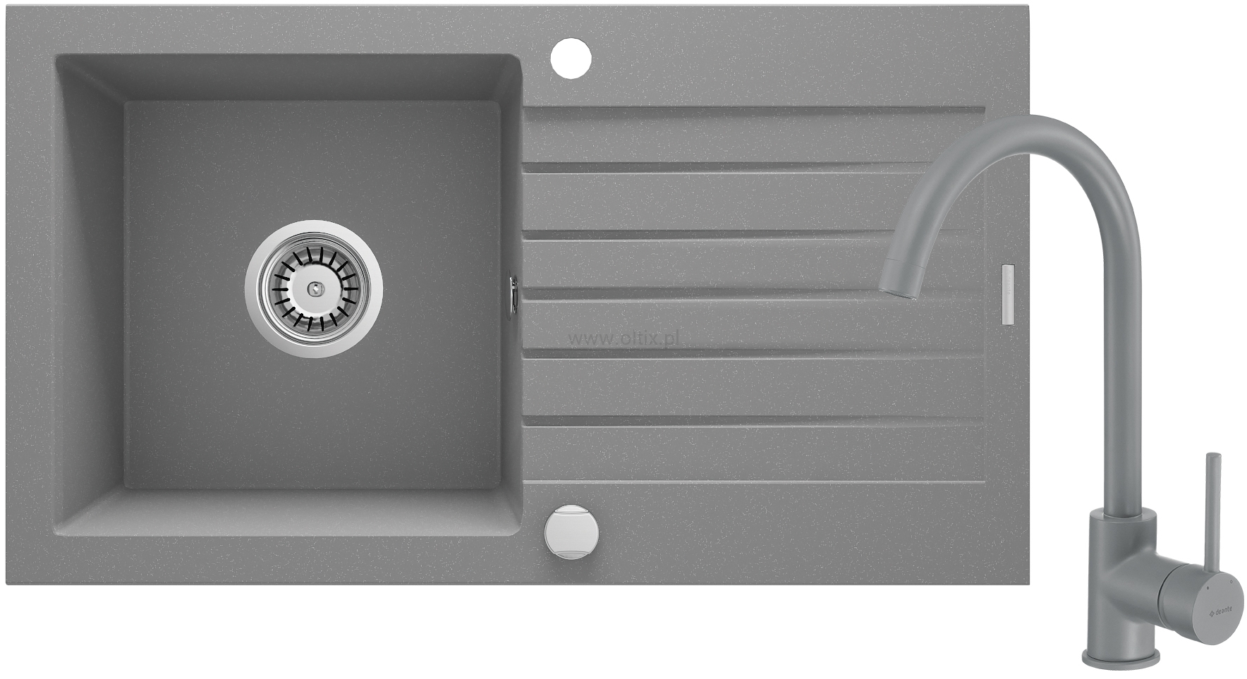 Zlewozmywak granitowy z baterią 1-komorowy z ociekaczem Deante Zorba ZQZBS113