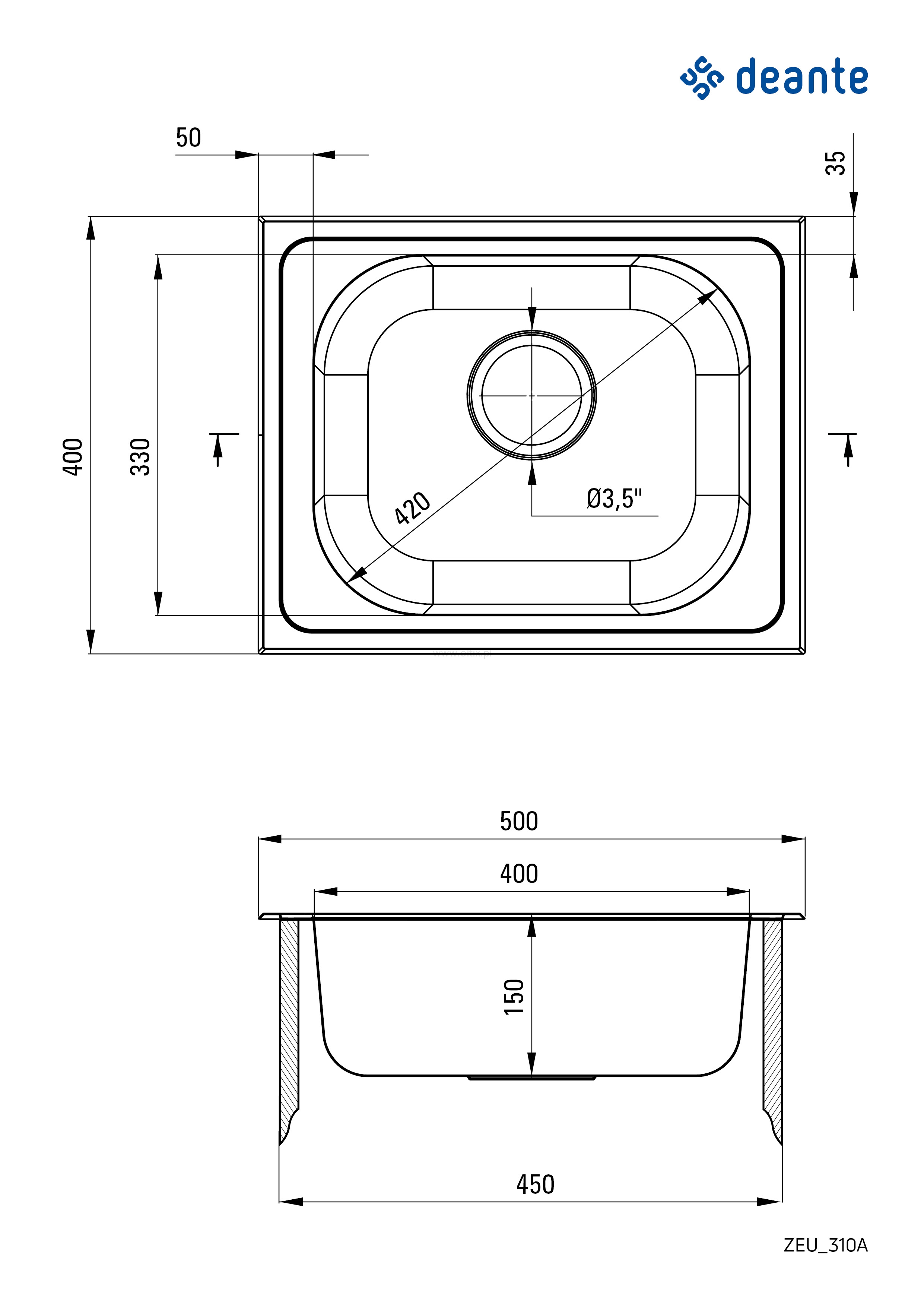 Zlewozmywak stalowy 1-komorowy Deante Techno ZEU 310A