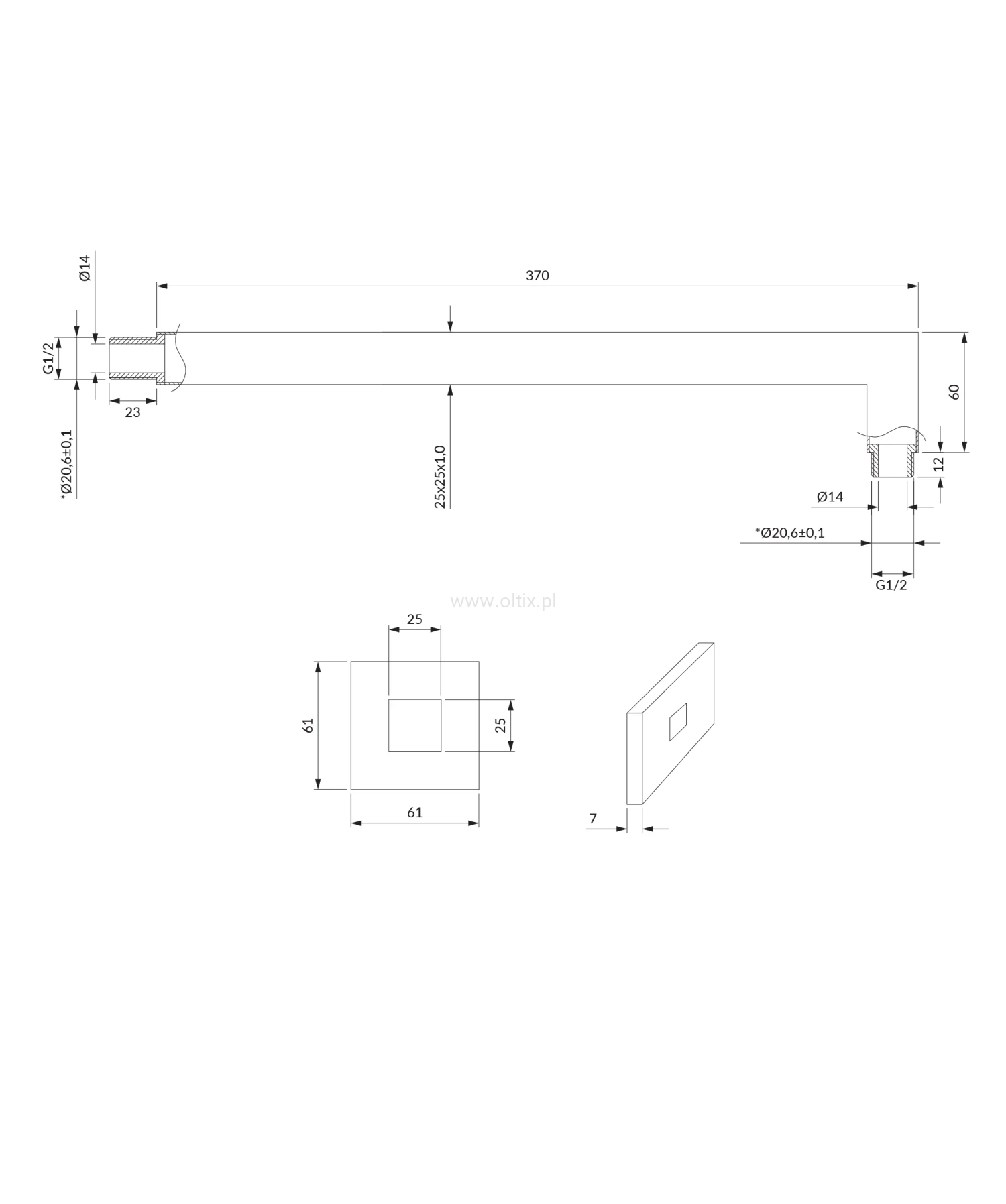 ramię prysznicowe ścienne, 37 cm, chrom połysk RA12CR